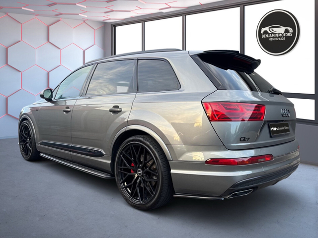 Welcome to Benjamin Motors Premium Car Dealership We are located in Amiens street D01 F8P0 New in stock Audi Q7 S Line Quattro V6 3.0 diesel 272 BHP Presented in metallic grey New Nct 11/2026 Tax 10/2025 Only 105k miles on it Extensive service history including full service done recently Timing chain done Gearbox service done Features: Head up display Lane assist Radar system Audi pre sense system Bose sound system Panoramic sunroof Fully electric seats Heated front and rear seats Four zone climate controlled Air conditioning Android / Apple car play compatible Self parking system Auto start / stop system Keyless entry / keyless go Memory seats Front and rear parking sensors Reversing camera Remote boot release Remote tow bar release 7 seats Multifunction steering wheel Paddle shifters (multiple driving modes) Cruise control / speed limiter Satellite navigation Virtual display Wireless charging cradle for mobile 20 inch Veemann Glos black upgraded wheels Maxton design kit all around Fully dechromed 2 keys and much much more Call anytime on 0852626625 in order to book a viewing on this vehicle or to reserve it with a holding deposit Finance available History checked Delivery available Valet done Warranty available Follow us on TikTok and instagram @benjaminmotors Air conditioning, Climate control, Dual zone climate control, Armrest, Keyless entry, Electrically adjustable seats, Electric boot, Electric side mirrors, Electric windows, Electric handbrake, Heated seats, Lumbar support, Multi-function steering wheel, Rain sensor, Spare tyre, Split rear seats, Bluetooth, 12v power outlet, Radio, USB connection (front), Cruise control, Hill hold assist, Navigation system, Front parking sensors, Rear parking sensors, Remote boot release, Roof rails, Speed limiter, Start-stop system, Voice control, Digital instrument panel, Alloy wheels, Leather interior, Leather steering wheel, Spoiler, Sports seats, Tinted windows, Auto lights (dusk sensor), Daytime running lights, LED headlights, ABS, Anti collision system, Alarm system, Emergency brake assist, Central locking, Remote central locking, Driver-side airbag, Immobilizer, Isofix, Tyre pressure monitor, Passenger-side airbag, Seat belt warning, Side airbag, Stability control, Traction control, 4WD