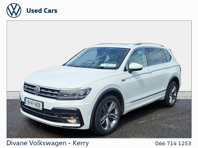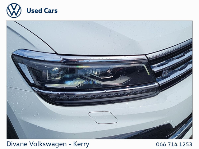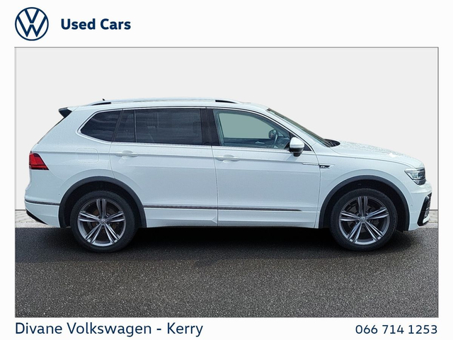TIGUAN ALLSPACE R-LINE 2.0 TDI AUTOMATIC 150 BHP IN PURE WHITE €280 ROAD TAX. CALL FOR MORE INFO! • 1 OWNER • NEW NCT • ABS • Multi zone climate control • 12v power outlet • Anti collision system • Apple CarPlay • Air conditioning • Climate control • Remote central locking • Android Auto • Keyless entry • Traction control • Driver-side airbag • Parking assistance • Front parking sensors • Dual zone climate control • Bluetooth • Radio • Central locking • USB connection (front) • Electric side mirrors • Hill hold assist • Isofix • Tyre pressure monitor • Remote boot release • Seat belt warning • Spare type • Speed limiter • Start-stop system • Emergency brake assist • Cruise control • Adaptive cruise control • Lumbar support • Auto lights (dusk sensor) • LED headlights • Navigation system • Stability control • Multi-function steering wheel • Immobilizer • Daytime running lights • Passenger-side airbag • Armrest • Lane departure warning • Spoiler • Gear shift paddles • Electric windows • Electric handbrake • Heated seats • Touch screen display • Rear parking sensors • Roof rails • Side airbag • Voice control • Self-steering parking • Digital instrument panel • Leather steering wheel • Parking camera • Alloy wheels • Rain sensor • VW Bank Finance Available