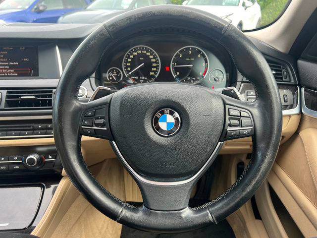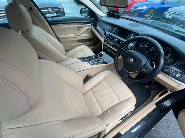 *ONLY TEN MINUTES FROM BLANCHARDSTOWN SHOPPING CENTRE* 2014 BMW 518D SE Auto in excellent condition throughout with an excellent service record and huge spec to include: upgraded alloy wheels, xenon headlights, front foglights, keyless entry & start, electric windows & mirrors, parking sensors, full leather upholstery, electric & heated front seats, ambient lighting, bluetooth telephone system, aluminium dash inlays, cruise control, media control unit, front centre armrest, sport seats, climate control with A/C, leather multifunction sport steering wheel, abs, isofix, esp, multiple airbags etc. For further information, please contact Aaron on 01 8017777 / 083 1155301