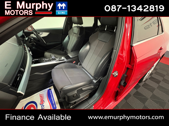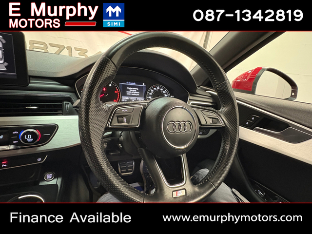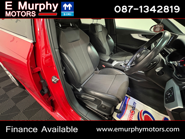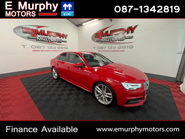 2017 (172) AUDI A4 2.0 TDI S/LINE 190 BHP AUTO TOP SPEC *****FREE NATIONWIDE DELIVERY***** ***FINANCE THIS CAR FOR €75 PER WEEK WITH €4950 DEPOSIT OR TRADE IN*** **FINANCE CAN BE TAILORED TO SUIT CUSTOMER** **APPLY FOR FINANCE @ WWW.EMURPHYMOTORS.COM// //ALL CREDIT/DEBIT CARDS BANK TRANSFERS ACCEPTED// -2 X OWNER CAR FROM NEW -103145 WARRANTED MILES -LOW ROAD TAX OF €190 PER YEAR -FINISHED IN STUNNING TANGO RED **WITH A HOST OF EXTRAS TOO MANY TO LIST** -HALF LEATHER INTERIOR -BI/XENON HEADLIGHTS -FRONT & REAR PARKING SENSORS -DUAL CLIMATE CONTROL -CRUISE CONTROL -SATELITTE NAVIGATION -AUTO LIGHTS & WIPERS -20" ALLOY WHEELS - L.E.D DAYTIME RUNNING LIGHTS -AUTOMATIC TRANSMISSION -REAR HALF PRIVACY GLASS & MUCH MORE!!!!!! -TIMING BELT KIT & WATERPUMP REPLACED @85000 MILES -FULLY SERVICED & FULLY CHECKED OVER TO MAIN DEALER STANDARDS -FULLY VALETED & DETAILED -ALL IMPORT FEES & VRT INCLUDED IN PRICE -ALL OUR VEHICLES COMES WITH A FULL CARTELL REPORT -SUITABLE TRADE IN ACCEPTED //OPEN MONDAY /FRIDAY 9-6PM// //SATURDAY BY APPOINTMENT ONLY// WE ARE LOCATED JUST 10 MINUTES OFF J17 OF M1 MOTORWAY (ONLY 45 MINUTES FROM DUBLIN AIRPORT) E MURPHY MOTORS FOR QUALITY RANGE & SERVICE **BUY WITH CONFIDENCE FROM A SIMI APPROVED DEALERSHIP** //LIKE US ON FACEBOOK FOR FULL VIDEOS ON ALL OUR STOCK// **AWARD WINNING DEALERSHIP BEST ONLINE MARKETING 2022** **CARS IRELAND BEST SOCIAL MEDIA Q4 2022** **CARSIRELAND BEST SOCIA MEDIA Q3 2023** **CARSIRELAND BEST SOCIAL MEDIA Q1 2024 features -adjustable seats -adjustable steering column/wheel -bluetooth phone -4 x electric windows -electric & heated mirrors -auto lights & wipers -front & rear parking sensors -isofix seats -3x3 point rear seat belts -child locks -multiple airbags -satelitte navigation -body coloured bumpers & mirrors -cruise control -automatic transmission -rear half privacy glass Perfect working order, 3 Month Warranty, Central Locking, CD Player, Immaculate condition, Electric Windows, Airbag, Alloy Wheels, Cruise Control, Electric Mirrors, Immobiliser, Half Leather, Privacy Glass, Automatic Wipers, Automatic Lights, Centre Armrest, Luggage Cover, Multi-function steering wheel, Climate Control, Satellite Navigation, Traction Control, Metallic Paint, Multiple Air Bags, Xenon Lights, Anti-Theft System, Parking Sensors, Bluetooth, Remote Central Locking, EBD, Isofix, Hill holder, History Checked, Finance Checked, Front Parking Sensors, Active Safety Braking / City Brake / Collision Alert, Stop/Start Button, Dual Zone Climate Control, Daytime Running Lights, 2 Keys, External Devices Connectivity, Cup holders, Remote boot/hatch/rear door release, Stability control