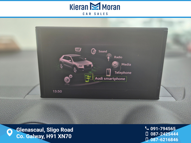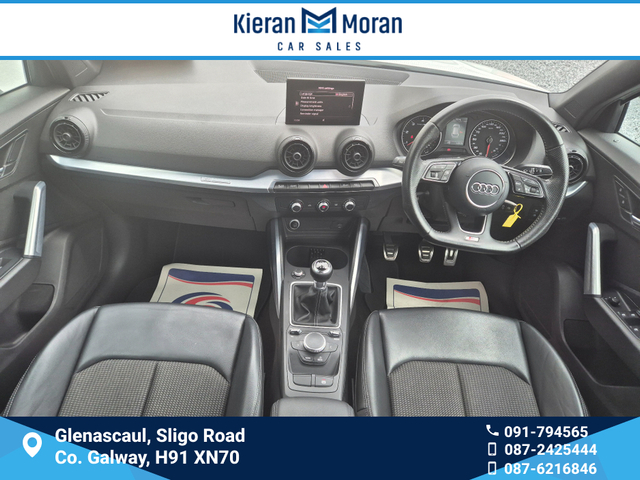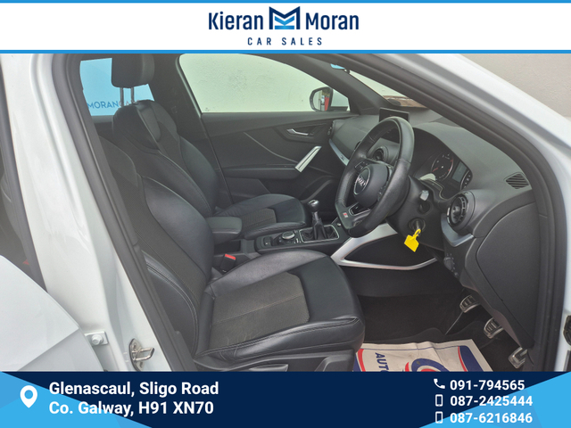 Amazing Audi Q2 S-line Diesel in stock and now for sale. This beautiful car offers top class comfort, style and reliability with modern comforts and practicality. Finished in White with 18" Audi Alloy Wheels, this car comes with a 6-Speed Manual Gearbox, Parking Sensors, Auto Lights, Auto Wipers, Electric Mirrors, Electric Windows and Front. Features Inside Include Full Black S-line Leather Interior Multifunction S LINE Steering Wheel Bluetooth Handsfree Cruise Control Speed Limiter LED Trip Computer Adjustable Steering Column Full LED Centre Console Audi Multimedia System Audi Smartphone Connection Bluetooth Media AM/FM Radio USB/AUX Slots CD Player SD Card Slots Auto Air-Conditioning 12v Plugs Auto Stop/Start Function Drive Mode Selection 3 Month Warranty, Central Locking, CD Player, Electric Windows, Airbag, Cruise Control, Centre Armrest, Multi-function steering wheel, Traction Control, Parking Sensors, Bluetooth, EBD, Isofix, Apple Car Play, Android Auto, Active Safety Braking / City Brake / Collision Alert, Stop/Start Button, External Devices Connectivity, Cup holders, Remote boot/hatch/rear door release, Stability control