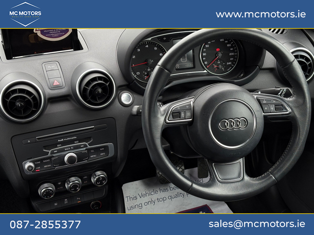 2015 AUDI A1 1.0 PETROL AUTOMATIC 90,500KMS WILL COME SUPPLIED WITH NEW NCT - FRONT AND REAR PARKING SENSORS - A/C - BLUETOOTH - PUSH BUTTON START - AUTO LIGHTS Please call beforehand to check availability and to book an appointment Price €13,450 This vehicle will come with a 6 month warranty. All our cars are fully history checked, come with a valid NCT, serviced and warranted to ensure complete piece of mind. Contact Mark for any more info call,text,WhatsApp or email. Video available upon request.
