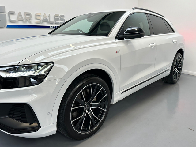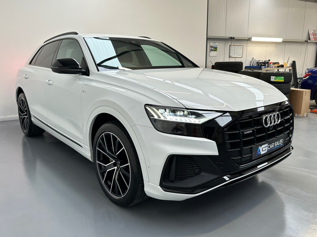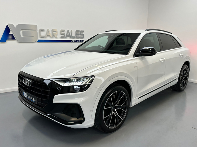 **Price includes VRT onto your county registration and free Nationwide delivery** 2023 Audi Q8 3.0 50 TDi S-Line Quattro Black Edition Finished in unmarked Glacier White Only 32K warranted miles Full Service History Quattro Black Edition 22 alloy wheels Air Suspension Virtual cockpit 360 cameras Ambient lighting Comfort pack Bang and Olufsen sound pack Comfort access Privacy glass Touch screen interface Stop/Start Multi function steering wheel Sat nav Black Leather interior Heated seats Auto lights Parking sensors Day time running lights Bluetooth phone technology USB and AUX port Air con Climate control Very economical Fully serviced, valeted and comes with 6 months warranty Extended warranty available up to 36 months Indoor evening viewing available Check out our 5 star reviews for peace of mind Card payments available Finance available at very competitive rates Click and deliver service available anywhere in Ireland, contact us for details Call Andrew on 07754334336 / 00447754334336 www.agcarsales.co.uk