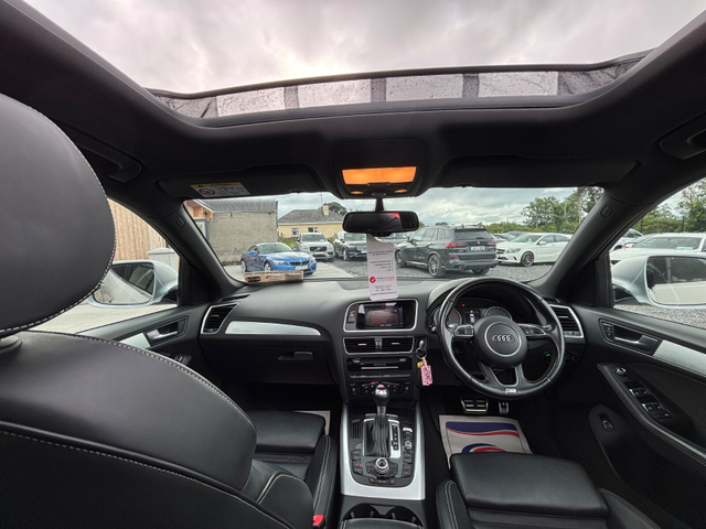 2016 AUDI SQ5 3.0L TDI 326BHP QUATTRO V6 ENGINE VERSION AUTOMATIC TRIP TRONIC GEARBOX NCT VALID UNTIL 17/01/2026 ROAD TAX VALID UNTIL 31/10/2025 ONLY COVERED 128K MILES FROM NEW SPEC AS FOLLOWS BLACK LEATHER INTERIOR PAN ROOF ELECTRIC TAILGATE FLAT BOTTOM STEERING WHEEL HEATED FRONT SEATS CLIMATE CONTROL XENON LIGHTS LED TAIL LIGHTS AUTO LIGHTS AUTO WIPERS ELECTRIC WINDOWS BT AUDIO SAT NAV PARKING SENSORS ISO FIX AIR CONDITIONING MULTIFUNCTIONAL STEERING WHEEL AND MUCH MUCH MORE CAR COMES FULLY SERVICED PROFESSIONAL VALETED ??NATIONWIDE DELIVERY AVAILABLE ?? SERIOUS VALUE FOR MONEY AT STRAIGHT SALE € 27,995 TRADE IN € 28,995 WALK AROUND VIDEO AVAILABLE FULL HISTORY CHECK AVAILABLE WARRANTY OPTIONS AVAILABLE OPTIONAL 24 MONTH WARRANTIES VIEWING 7 DAYS A WEEK BY APPOINTMENT ONLY VISIT OUR WEBSITE WWW.JMCCARSALES.IE CALL SALES TODAY ON 044 9206009? CALL JOHN TODAY ON 087 134 6598? CALL JASON TODAY ON 087 1475868 ? *FINANCE OPTIONS AVAILABLE* Air conditioning, Climate control, Armrest, Keyless entry, Electrically adjustable seats, Electric boot, Electric side mirrors, Electric windows, Electric handbrake, Heated seats, Lumbar support, Multi-function steering wheel, Rain sensor, Gear shift paddles, Bluetooth, CD, 12v power outlet, Radio, Cruise control, Hill hold assist, Rear parking sensors, Remote boot release, Roof rails, Speed limiter, Start-stop system, Digital instrument panel, Alloy wheels, Leather interior, Leather steering wheel, Spoiler, Sports seats, Tinted windows, Auto lights (dusk sensor), Bi-xenon headlights, Daytime running lights, ABS, Anti collision system, Emergency brake assist, Central locking, Remote central locking, Driver-side airbag, Immobilizer, Isofix, Tyre pressure monitor, Passenger-side airbag, Seat belt warning, Side airbag, Stability control, Traction control, Emergency tyre repair kit, 4WD, Sport suspension