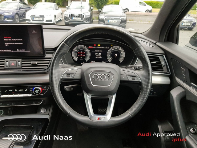 Mobile Phone Preparation-Bluetooth, Touchscreen Stereo, Audi Drive Select, Audi Stop/Start, Auto Handbrake, Cruise Control, 19"Alloys, Metallic Paint, S-Line Body Styling, Armrest, Button Start-Stop, Climate Control, Drivers Information System, Electric Mirrors, Electric Windows, Illuminated Vanity Mirror, LED Interior Light Pack, Privacy Glass, Rake/Reach Adjustable Steering Column, Split Fold Rear Seats, 3 Spoke Sports Steering Wheel, Front Sports Seats including Electric Lumbar Support, Anti-Lock Brake System, Child Locks, Front and Rear Park Assist, Immobilizer, Power Boot Opening and Closing, Reverse Camera, Remote Central Locking, USB, Audi Connect