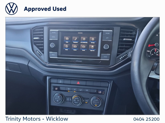 TRINITY VOLKSWAGEN ARE EXCITED TO OFFER THIS STUNNING VOLKSWAGEN T-ROC SUV FINISHED IN PURE WHITE PAINTWORK AND IS COMPLEMENTED CLOTH SEATS PLEASE NOTE PRICE QUOTED INCLUDES €2000 MAXIMUM SCRAPPAGE ALLOWANCE,REATIL PRICE OF CAR €23950 - IT HAS A BEAUTIFUL SPECIFICATION WHICH INCLUDES - 16” STEEL WHEELS - ELECTRIC HEATED POWER MIRRORS - 2 ZONE CLIMATE CONTROL - MULTIFUNCTION LEATHER STEERING WHEEL - LANE ASSIST - FRONT ASSIST - HILL START ASSIST - 2 X USB FRONT - LOW-RATE FINANCE ARRANGED - DEPOSIT SECURES CAR - CONTACT A MEMBER OF OUR SALES TEAM TODAY ON 0404 25200 TO ARRANGE A TEST DRIVE - TRINITY VOLKSWAGEN DUBLIN ROAD WICKLOW - A67X867 The vehicle information displayed above highlights the typical specification of the most recent model of this vehicle. We offer this information in good faith however cannot guarantee the accuracy of any specification/information supplied as the specification can vary. You must physically check the specification of the vehicle on site prior to purchase. The specification & features on this website do not form part of the buying contract
