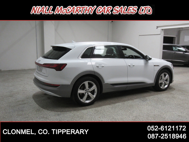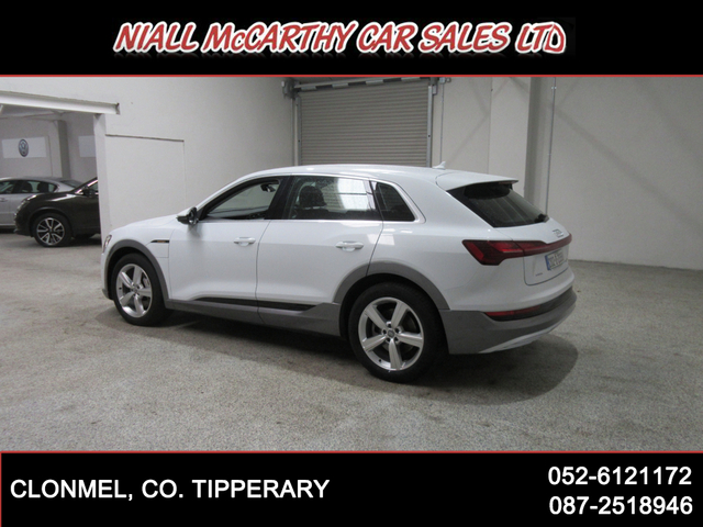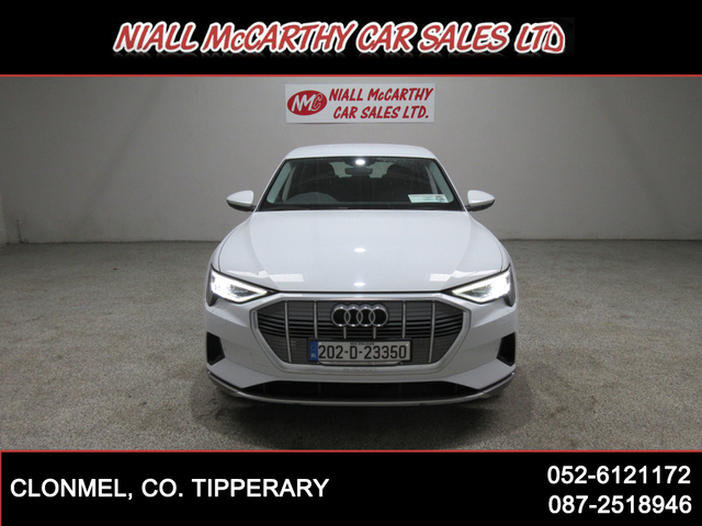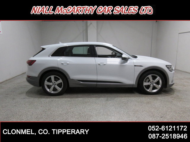 Price listed includes a €2,000 scrappage/min trade in allowance for an older car. Retail price is €24,895. Buy this car for €97 with a €3,000 deposit on our very popular Scrappage Scheme. Absolutely stunning 202 reg Audi e-Tron. Comes in mint condition, one owner, well maintained, fully serviced and a long NCT test. Extras on this beautiful electric SUV include front & rear parking sensors, reversing camera, motorised boot lid, heated leather seats, privacy glass, heated & folding mirrors, sat nav, lane departure, cruise control, bluetooth and much more. Why not call today for a test drive and have finance arranged. Air Conditioning, Immaculate condition, Electric Windows, Alloy Wheels, Cruise Control, Electric Mirrors, Immobiliser, Rear Spoiler, Full Leather, Privacy Glass, Heated Seats, Automatic Lights, Centre Armrest, Multi-function steering wheel, Satellite Navigation, Traction Control, Metallic Paint, Parking Sensors, Bluetooth, Remote Central Locking, Electronic handbrake, Folding rear seats, Isofix, History Checked, Finance Checked, Reversing Camera, Motorised Tailgate, Front Parking Sensors, Lane Departure Warning, Touch Screen Media Control, Dual Zone Climate Control, Daytime Running Lights, 2 Keys
