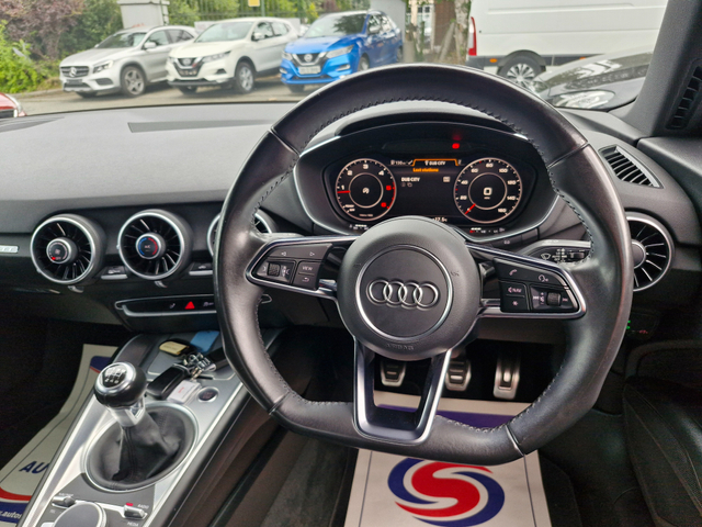 2015 AUDI TT SPORT ULTRA 2.0 TDI 190BHP MANUAL NCT 07/26 FINANCE AVAILABLE @ €85 PER WEEK COMES WITH - 2 KEYS - FULL SERVICE HISTORY - TIMING BELT AND WATER PUMP REPLACED - DIGITAL DASHBOARD - HALF LEATHER - AUDI MMI - A/C - BLUETOOTH - MULTI FUNCTION STEERING WHEEL - ELECTRIC WINDOWS AND MIRRORS - HISTORY CHECKED *ALL CARS ARE ADVERTISED WITH A FRESH NCT. WE GUARANTEE ALL CARS A NCT PASS. WE MAKE THE BOOKING AND COVER ANYTHING THE CAR FAILS ON.* ** OWN THIS CAR FOR LESS THAN €85 PER WEEK OVER 60 MONTHS / 5 YEARS WITH A €1595 DEPOSIT** OUR GOOGLE MAPS LOCATION CAN BE FOUND HERE ---- https//maps.app.goo.gl/cb4jecBYL2djBnkc7 HERE AT DELTA CAR SALES WE AIM TO INSTILL AS MUCH CONFIDENCE AS POSSIBLE IN OUR CUSTOMERS WHEN BUYING A USED CAR. FAMILY RUN BUSINESS ESTABLISHED IN THE MOTOR TRADE OVER 20 YEARS OPERATING FROM THE SAME PREMISES. ALL OUR VEHICLES COME WITH PARTS AND LABOUR WARRANTY A FRESH NCT AND ARE FULLY SERVICED AND CHECKED PRIOR TO LEAVING OUR FORECOURT TO ASSURE OUR CUSTOMERS OF THE HIGHEST QUALITY. FOR ANY MORE INFORMATION PLEASE CONTACT OUR SALES TEAM ON THE DETAILS BELOW OR DROP INTO OUR NAAS ROAD SHOWROOM. TEL 01-4565236 MOB 087-6003867 Central Locking, Electric Windows, Airbag, Rear Spoiler, Multi-function steering wheel, Traction Control, Anti-Theft System, Bluetooth, EBD, Isofix, Keyless Entry, Active Safety Braking / City Brake / Collision Alert, Stop/Start Button, External Devices Connectivity, Cup holders, Remote boot/hatch/rear door release, Stability control