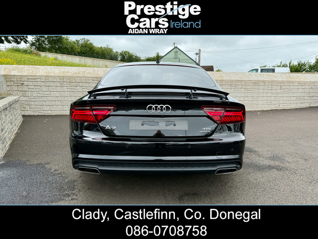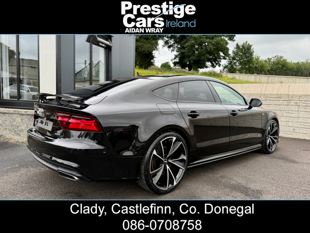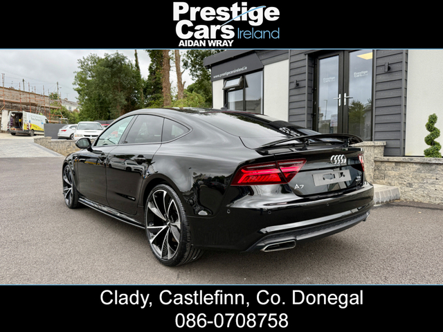 2015 AUDI A7 3.0 TDI S LINE SPORTBACK BLACK EDITION QUATTRO AUTO 272 BHP,FULL HEATED LEATHER,HEAD UP DISPLAY,XENON/LED LIGHTS,JET BLACK,FRONT SPLITTER,SIDE SKIRT EXTENSIONS,21” RS7 ALLOYS,TWO OWNERS,FULLY LOADED