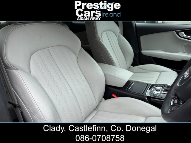 www.prestigecarsireland.ie (FREE DELIVERY ANYWHERE IN IRELAND) *TOP RATE ON EURO GIVEN* IRISH REG (151 D 51166) - CAR WILL BE SOLD WITH NEW NCT ***BLACK EDITION/JET BLACK/21" ALLOY WHEELS/R-CAMERA/FRONT CAMERA/HEAD UP DISPLAY/AMBIENT LIGHTING/PARK ASSIST*** **7000 OF AUDI FACTORY FITTED OPTIONS** 2015 (151) AUDI A7 3.0 TDI QUATTRO S-LINE BLACK EDITION 272 BHP, AUTOMATIC, ONLY 98,000 MILES WITH A FULL SERVICE HISTORY, TWO OWNERS FROM NEW, TECHNOLOGY PACKAGE, FULL PREMIUM LEATHER INTERIOR, ALCANTARA DOOR PANELS, HEATED SEATS, FRONT ELECTRIC SEATS, **AMBIENT LIGHTING**, HEAD UP DISPLAY, RETRACTABLE REAR SPOILER, BIG SCREEN COLOUR DISPLAY SAT-NAV/DVD PLAYER, ON-BOARD COMPUTER, MULTI FUNCTIONAL WHEEL, FLAT BOTTOM STEERING WHEEL, IPOD/USB CONNECTION, BLUETOOTH, HEATED AND ELECTRIC FOLDING DOOR MIRRORS WITH AUTO DIMMING, AUDI DRIVE SELECT OPTIONS, LANE DEPARTURE WARNING, PROGRESSIVE STEERING, DAB DIGITAL RADIO, BOSE SOUND SYSTEM, PIANO FINISH BLACK, HEADLIGHT WASHERS, BRAND NEW 21" ALLOY WHEEL PACKAGE,OPTIONAL EXTRA 1100 STG, **FRONT SPLITTER AND SIDE SKIRT EXTENSIONS**, BLACK STYLING PACK, HIGH GLOSS PACK, STORAGE PACK, TWIN EXHAUSTS, DYNAMIC INDICATORS, XENON-MATRIX/LED FRONT AND REAR LIGHTS, LED FRONT FOG LIGHTS, FACTORY REAR PRIVACY GLASS, FRONT AND REAR PARK SENSORS, REVERSE CAMERA, FRONT CAMERA, PARK ASSIST, ELECTRIC TAILGATE, FINISHED IN STUNNING JET BLACK, AUTOMATIC GEARBOX WITH F1 PADDLES, 2 KEYS AVAILABLE AND ALL PAPERWORK PRESENT, MINT CONDITION INSIDE AND OUT. ANY INSPECTION WELCOME. EXCELLENT VALUE. MASSIVE SPEC *(CAR IS FITTED WITH A BRAND NEW 21" ALLOY WHEEL PACKAGE,OPTIONAL EXTRA 1100 STG)* **ROI/NI/UK TRADE IN'S ACCEPTED @ TRADE PRICES** -CALL AIDAN ON 00447856438001 OR 0860708758 ***EXCELLENT FINANCE PACKAGES AVAILABLE TO NI/UK/ROI CUSTOMERS*** CREDIT & DEBIT CARDS ACCEPTED PRICE INCLUDES 3 MONTHS WARRANTY FULLY VALETED/DETAILED *ALL OUR STOCK IS PUT OUT TO A VERY HIGH STANDARD* ALL CARS COME FULLY SERVICED WITH NEW TIMING BELT & WATER PUMP KIT FITTED INCLUDING FULL CHECKOVER HPI PRINT OUT VIEWING AVAILABLE 7 DAYS A WEEK, OPEN LATE EVERY NIGHT PRESTIGE CARS IRELAND VIEW OUR FACEBOOK PAGE "PRESTIGE CARS IRELAND" Central Locking, Electric Windows, Airbag, Cruise Control, Rear Spoiler, Privacy Glass, Centre Armrest, Multi-function steering wheel, Satellite Navigation, Traction Control, Anti-Theft System, Parking Sensors, Bluetooth, EBD, Isofix, Active Safety Braking / City Brake / Collision Alert, Stop/Start Button, External Devices Connectivity, Cup holders, Remote boot/hatch/rear door release, Stability control