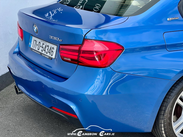 Welcome to CameronCars! We are thrilled to have you here. Our dedicated team is ready to assist you in finding the perfect vehicle that fits your needs and budget. BMW ULTIMATE DRIVING MACHINE A 2017 BMW 330e M Sport in Estoril Blue with grey leather interior is a desirable combination. The 330e is a plug-in hybrid, offering both fuel efficiency and performance. The M Sport trim adds sporty styling and handling, while the Estoril Blue exterior and grey leather interior provide an attractive aesthetic. The M Sport package includes sport seats, a sport steering wheel, and unique exterior and interior trim. The 330e offers a balance of performance and fuel efficiency, with an electric-only range for shorter trips and gasoline power for longer journeys. Estoril Blue is a popular and distinctive BMW color. Grey leather is a sophisticated and relatively low-maintenance interior color option. . Central Locking, Electric Windows, Airbag, Cruise Control, Fog Lamps, Centre Armrest, Multi-function steering wheel, Satellite Navigation, Traction Control, Anti-Theft System, Parking Sensors, Bluetooth, EBD, Isofix, Active Safety Braking / City Brake / Collision Alert, Stop/Start Button, External Devices Connectivity, Cup holders, Remote boot/hatch/rear door release, Stability control