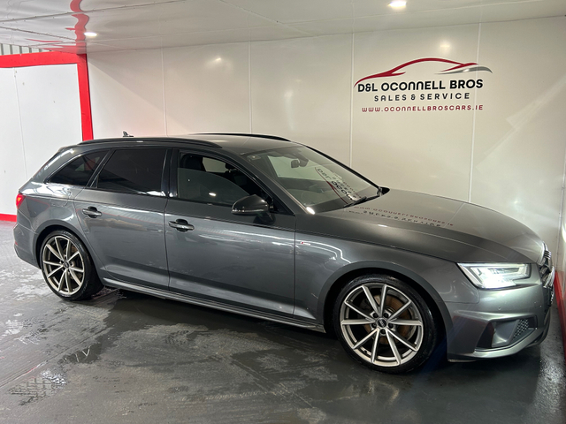 2019 (191) Audi A4 2.0 Tdi S Line Ultra 150Bhp, New model, Factory Black Edition, Full S Line extras, Fully loaded Top Specification model, Grey Metallic, Full half leather black S Line Embossed interior, Automatic Transmission, Full service history, One owner car from new, Interior Ambient Lighting, Cruise control, 19" S Line Black Edition Alloys, Electric folding mirrors, Automatic transmission, S Line body styling, Mobile phone preparation-Bluetooth, Lumbar support, Button start-stop, Satellite navigation, Automatic lights and wipers. Automatic air conditioning, Cruise control, Piano black dash trim, Multifunctional leather steering wheel, Xenon with LED daytime running Iights, Matrix lighting, Reversing sensors, Armrest, Black roof cloth, Cornering lights, Heated seats, Auto dimming rear view mirror, Dual zone climate control, Optional driving mode. Limit control, Alarm & immobilizer, Electric windows & mirrors, Automatic handbrake, Dealer warranty included, Finance available over 3/4/5 years apply online www.oconnellbroscars.ie. Central Locking, Electric Windows, Airbag, Rear Spoiler, Centre Armrest, Multi-function steering wheel, Roof Rails, Satellite Navigation, Traction Control, Metallic Paint, Parking Sensors, Bluetooth, EBD, Isofix, Active Safety Braking / City Brake / Collision Alert, Stop/Start Button, External Devices Connectivity, Cup holders, Remote boot/hatch/rear door release, Stability control