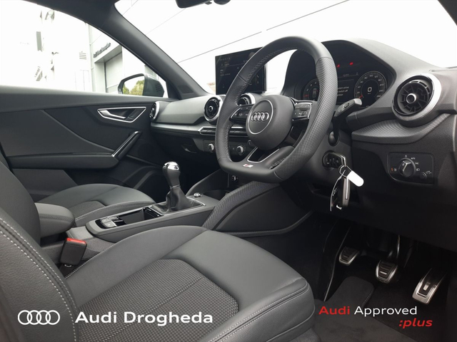 Audi Q2 S line 30 TFSI 116 PS 6-speed • Touchscreen Stereo • Alloy Wheels • Air Conditioning • Climate Control • ABS • Alarm • Anti-Lock Brake System • Auto Lights and Wipers • Child Locks • ISO Fix • Reverse Camera • USB • Front and Rear Park Sensors