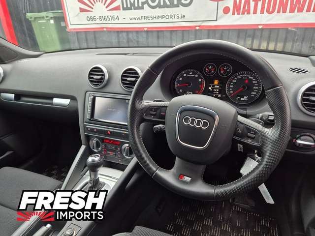 2012 AUDI A3 S-LINE 1.4L ENGINE AUTOMATIC VERY LOW MILEAGE ONLY 59,000KM 1 OWNER FROM NEW CAR THIS AUDI A3 SPORTBACK S-LINE IN BRILLIANT BLACK METALLIC IS IN EXCEPTIONAL CONDITION INSIDE AND OUT, FULL S-LINE SPEC S-LINE ALLOY WHEELS S-LINE SEATS HALF LEATHER SEATS S-LINE BODY KIT S-LINE ROOF SPOILER 17INCH S-LINE ALLOYS NEW SMART TOUCHSCREEN RADIO REVERSE CAMERA F1 STYLE PADDLE SHIFT CRUISE CONTROL FRONT AND REAR PARKING SENSORS REAR PRIVACY GLASS CLIMATE CONTROL WITH A/C 2 KEYS & MUCH MORE TO ADD *3 MONTHS GARAGE WARRANTY* *3 MONTHS ROAD TAX* *FRESH NCT * THIS CAR WILL NOT HANG AROUND,IT IS IN AS NEW CONDITION WITH VERY LOW MILEAGE AND WITH SUCH HIGH SPEC THIS AUDI A3 REALLY STANDS OUT IN THE CROWD. FULL WALKAROUND VIDEO AVAILABLE OPON REQUEST ? ?? Import Your Dream Car From Japan - At FRESH IMPORTS we Source, Import, Register and Sell any Vehicle You Desire! ?? ? To arrange an appointment feel free to contact us anything through email or phone ? Always Check Our Website For Most Recent Stock ?0851965380 ? [email protected] ? Contact Us For A Test Drive ? Trade In Accepted ? Comprehensive Warranty Available On All Cars ? FREE Nationwide Delivery ? Ts And Cs Apply WWW.FRESHIMPORTS.IE Bluetooth,Centre Armrest,Climate Control,Cruise Control,Electric Mirrors,Electric Windows,Folding rear seats,Sports Seats,Air Conditioning,Anti-Theft System,Central Locking,Fog Lamps,Keyless Entry,Multiple Air Bags,Traction Control,Alloy Wheels,Metallic Paint,Privacy Glass,Rear Spoiler,Android Auto,Apple CarPlay,Dual Zone Climate Control,Half Leather Seats,Multi-Function Steering Wheel,Sat Nav,Touch Screen Infotainment System,Wireless Smartphone Control,Engine Immobiliser,New Tyres,Reversing Camera,Leather Upholstery,Service History,AUX Connection,Cup Holders