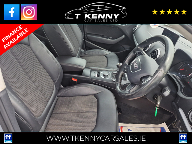 Local lady owner, who we sold this Audi A3 to 4 years previous. Slightly higher km than average, car is priced accordingly.. Sold with new Nct This vehicle is sold fully serviced, Vallated, tested and sold with warranty.. Suitable trade in welcome @ €10,950 0% Deposit €62 P/W or €268 P/M 10% Deposit €58 P/W or €250 P/M 20% Deposit €54 P/W or €232 P/M Price Includes a €2000 Scrappage/Trade in booster allowance. Finance available on our website www.tkennycarsales.ie We are an award winning dealership with Carsireland 2021 & 2023 Simi approved dealership Central Locking, Electric Windows, Airbag, Fog Lamps, Rear Spoiler, Centre Armrest, Multi-function steering wheel, Traction Control, Metallic Paint, Parking Sensors, Bluetooth, EBD, Isofix, Active Safety Braking / City Brake / Collision Alert, Stop/Start Button, External Devices Connectivity, Cup holders, Remote boot/hatch/rear door release, Stability control