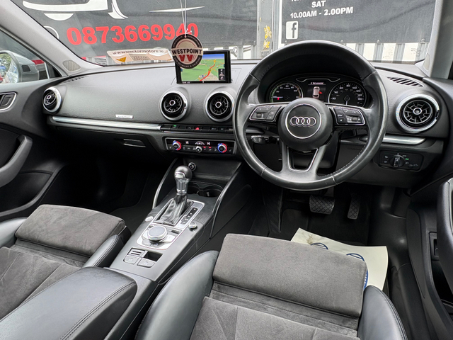181 AUDI A3, 1.4 PETROL E - TRON PLUG IN HYBRID AUTOMATIC, 40KM RANGE ON BATTERY, LOW MILES, NEW NCT, HALF LEATHER, SAT/NAV, PARKING SENSORS, SIDE AND FRONT DISTANCE SENSORS, USB/BLUETOOTH, ALLOY WHEELS, AC,CLIMATE CONTROL, ONBOARD COMPUTER, MULTI FUNCTIONING STEERING WHEEL, AUTO LIGHTS, WIPERS, WINDOWS AND MORE, COMES WITH WARRANTY, TRADE INS WELCOME. PLEASE BE AWARE NOT ALL CARS ARE KEPT ON SITE, SO PLEASE CALL AHEAD TO ARRANGE AN APPOINTMENT. -DELIVERY SERVICE AVAILABLE- N2 Car Sales offer a wide selection of second hand vehicles with a superb selection of brands. For more information please call Mobile 0873669940 Location Old North Road Coldwinters Dublin 11 D11P276 Opening hours Monday to Friday 1000 am - 1800 pm Saturday 1000 am - 1400 pm We are located 5 mins away from Dublin Airport. Central Locking, Electric Windows, Airbag, Rear Spoiler, Centre Armrest, Multi-function steering wheel, Satellite Navigation, Traction Control, Metallic Paint, Anti-Theft System, Parking Sensors, Bluetooth, EBD, Isofix, Active Safety Braking / City Brake / Collision Alert, Stop/Start Button, Touch Screen Media Control, External Devices Connectivity, Cup holders, Remote boot/hatch/rear door release, Stability control