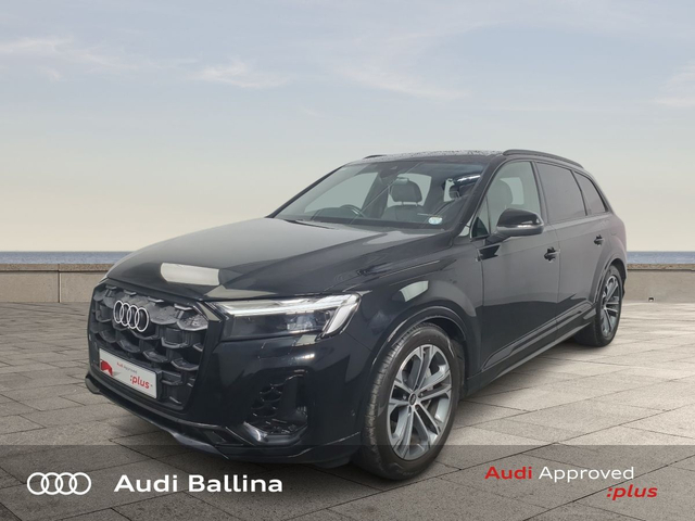 Now available at Connollys Audi Ballina, this stunning 2025 Audi Q7 is finished in MYTHOS BLACK METALLIC with a luxurious FULL BLACK LEATHER interior. Stylish, refined and packed with the latest technology, the Audi Q7 TFSIE SLINE delivers the perfect combination of performance, comfort and everyday practicality. This low-mileage example has been carefully inspected and prepared by our factory-trained technicians, offering excellent efficiency, smooth driving dynamics and premium interior quality expected from an Audi. With a full Audi service history, this vehicle is supplied through the Audi Approved :plus Programme, providing added reassurance and complete peace of mind for its next owner. If you’re looking for a premium, well-equipped and beautifully presented vehicle, this Audi is an excellent choice. Buying from Connolly’s Audi Ballina gives you peace of mind with: • Fully inspected vehicles • 12 Month Warranty • Flexible finance packages available • Trade-ins welcome • Nationwide Delivery Available Available now at Connollys Audi Ballina. Contact our sales team today to arrange a test drive or personalised video tour. • Quattro Four Wheel Drive • Alloy Wheels • Black Styling Pack • Metallic Paint • S-Line Body Styling • S-Line Exterior Pack • Tinted Windows • Button Start-Stop • Heated Seats • High Beam Assist • Full Service History • USB • Front and Rear Park Sensors • Voice control • Speed Limiter • Apple Carplay/Android Auto • USB C sharging ports • Audi Connect • Audi Lane Assist • Audi Smartphone Interface • Audi Virtual Cockpit • Electric Front seats with memory • MMI Navigation Plus with MMI Touch • Reverse Camera • S Line Valcona Leather