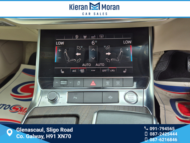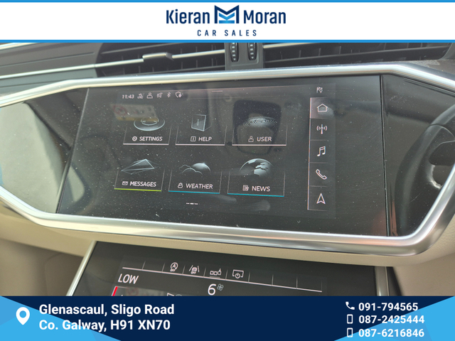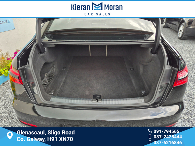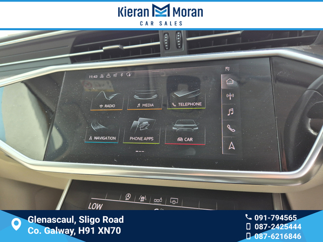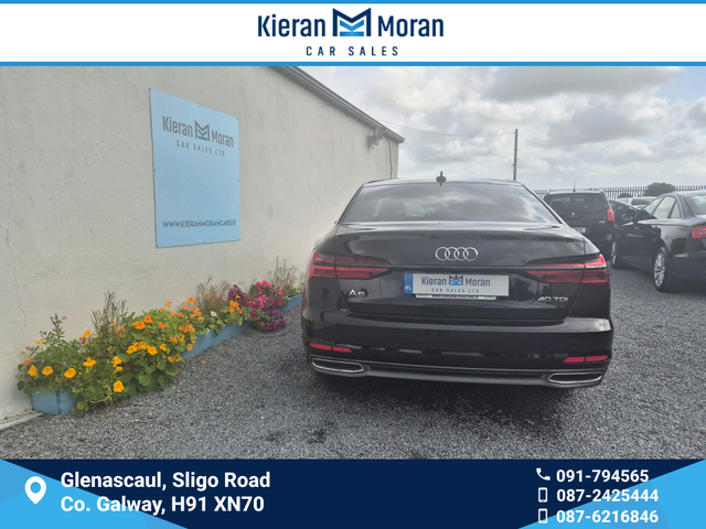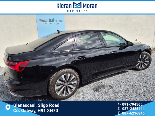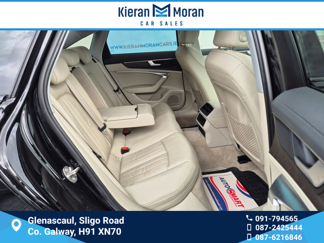 Beautiful Audi A6 in stock and now for sale. This amazing car offers comfort, space and style with economical performance and reliability that Audi is known for. Finished in Swartz Black with 18" Audi Alloy Wheels, this car comes with an Automatic Gearbox, Parking Sensors Front and Rear, Electric Folding/Heated Mirrors, Electric Windows, Auto Lights and Front Foglights. Features Inside Include Full Cream Leather Interior Wood Trim Throughout Heated Front Seats Multifunction Steering Wheel Paddle Shifters Bluetooth Handsfree Cruise Control Speed Limiter LED Trip Computer Adjustable Steering Column Push Button Start 2x Full LED Touch Screen Centre Consoles Apple CarPlay AndroidAuto Full Sat-Nav AM/FM Radio CD Player 2x USB Slots Sim Card Slot Full Auto Air-Conditioning Dual Zone Control Auto Stop/Start Function Lane Assist Function Drive Mode Selection Auto Hold Function 2x Cup Holders 12v Plugs Centre Armrest Storage Isofix Rear Seats Rear Centre Armrest Spacious Boot Area This car drives beautifully, smooth and solid along the road and in fantastic condition both inside and outside. A must see car to appreciate. For more information and all our stock visit www.kieranmorancars.ie 3 Month Warranty, Central Locking, Electric Windows, Airbag, Centre Armrest, Multi-function steering wheel, Satellite Navigation, Traction Control, Metallic Paint, Anti-Theft System, Parking Sensors, Bluetooth, EBD, Isofix, Active Safety Braking / City Brake / Collision Alert, Stop/Start Button, Touch Screen Media Control, External Devices Connectivity, Cup holders, Remote boot/hatch/rear door release, Stability control