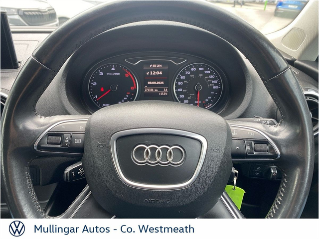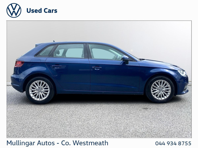 2016 Audi A3 2.0 Diesel 148bhp finished in Deep Blue. This is an SE Technik spec. Car has been tested, NCT valid 07/2026. Comes up to date with servicing and maintenance carried out. Highlights include: Rear parking sensors, cruise control, Audi multimedia infotainment, 16" alloys, A/C, bluetooth connectivity, sat nav and more. Trade ins welcome - Finance available. At Mullingar Autos, our Used Cars come with: Full vehicle history check. Comprehensive Warranty. Maintenance up to date. Competitive finance available. Outstanding Aftersales care. Want more finance info or reserve the car now for €199? - Available exclusively on www.mullingarautos.ie. Alternatively, call us now on 044 934 8755 or visit us on the Dublin Bridge, Mullingar, Co. Westmeath, N91 P651.