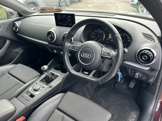 JUST ARRIVED!! This AUDI A3 S-LINE 1.4 TFSI 124BHP 5DR.. In stunning condition inside and out.. A fantastic car to drive.. It comes with a huge spec including.. Call Mark for more info on Ph 083 303 6593 or email [email protected] - Service History - S-Line Interior and Exterior - Media Play - Drive Mode Select - Alloys - Multi Functional Steering Wheel - Electric Windows - Air Con Here at Evra Motors we have a friendly knowledgeable sales team with over 20 years experience in the business. We are proud to be an AA Approved dealer with peace of mind as standard. We aim to stock a wide range of over 300 carefully selected premium AA Approved used cars all sourced directly from main dealerships here in Ireland. We aim to supply all our cars at the most competitive prices in the country. Extended warranty available on certain makes and models. Delivery can be arranged throughout the country. Each of our retail cars comes with a detailed history report and fully serviced or health checked by our in house service team of mechanics, a valid NCT will be provided and every car will be valeted prior to collection. Tailored finance packages available. We are open 6 days a week. For more information on our cars please contact Mark on Ph 083 303 6593 or email [email protected] Due to a high turnover in stock we recommend that you contact our sales team to make sure the car is still available and to make an appointment. Central Locking, Electric Windows, Airbag, Cruise Control, Fog Lamps, Centre Armrest, Multi-function steering wheel, Traction Control, Metallic Paint, Parking Sensors, Bluetooth, EBD, Isofix, Active Safety Braking / City Brake / Collision Alert, Stop/Start Button, External Devices Connectivity, Cup holders, Remote boot/hatch/rear door release, Stability control