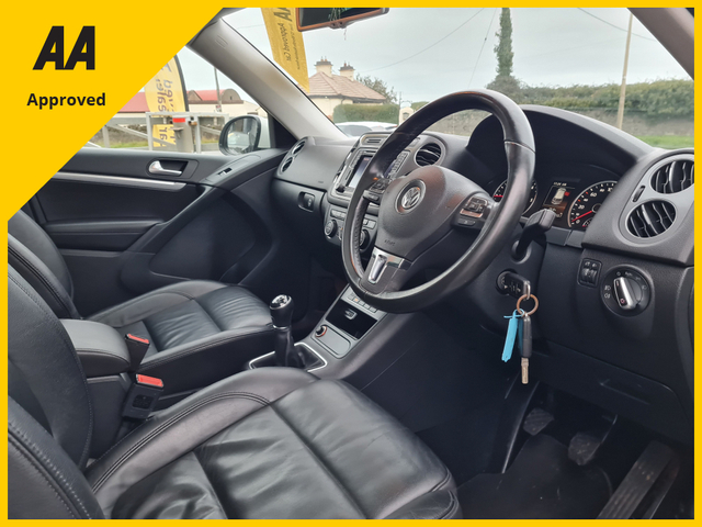 VOLKSWAGEN TIGUAN FULL LEATHER HIGH SPEC IRISH CAR FROM NEW WELL MAINTAINED EXCELLENT CONDITION THROUGHOUT COMES FULLY SERVICED AND WARRANTY ALL MAJOR CREDIT CARDS ACCEPTED FINANCE AVAILABLE HISTORY CHECKED CALL OR WATSAPP SALES ON 0852490309 OR 0871771771 WELCOME WELL PRICED CARS WE ARE A USED AUTOMOTIVE DEALERSHIP BASED IN BLAKE'S CROSS NORTH COUNTY DUBLIN WE OFFER A WIDE RANGE OF SERVICES FROM CAR SERVICING MECHANICAL CHECKS OUR MECHANICS ON SITE OFFER A WIDE RANGE OF MECHANICAL QUALITIES & EXPERIENCE THE AUTOMOTIVE INDUSTRY EACH CAR UNDERGOES A RIGOROUS INSPECTION TO ENSURE IT MEETS THE HIGHEST STANDARDS OF QUALITY AND PERFORMANCE. DRIVE HOME KNOWING YOU HAVE CHOSEN A RELIABLE AND TRUSTWORTHY VEHICLE Trade in accepted, Air Conditioning, Central Locking, CD Player, Immaculate condition, Electric Windows, Airbag, Alarm, Alloy Wheels, Cruise Control, Electric Mirrors, Fog Lamps, Immobiliser, Leather Upholstery, Full Leather, Privacy Glass, Heated Seats, Automatic Wipers, Automatic Lights, Centre Armrest, Luggage Cover, Multi-function steering wheel, Roof Rails, Climate Control, Traction Control, Metallic Paint, Anti-Theft System, Parking Sensors, Bluetooth, Remote Central Locking, EBD, Electronic handbrake, Folding rear seats, Six speed transmission, Hill holder, History Checked, Finance Checked, Panoramic Sunroof, Active Safety Braking / City Brake / Collision Alert, Stop/Start Button, Touch Screen Media Control, Driver Fatigue Warning, Dual Zone Climate Control, Daytime Running Lights, External Devices Connectivity, Cup holders, Remote boot/hatch/rear door release, Stability control