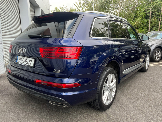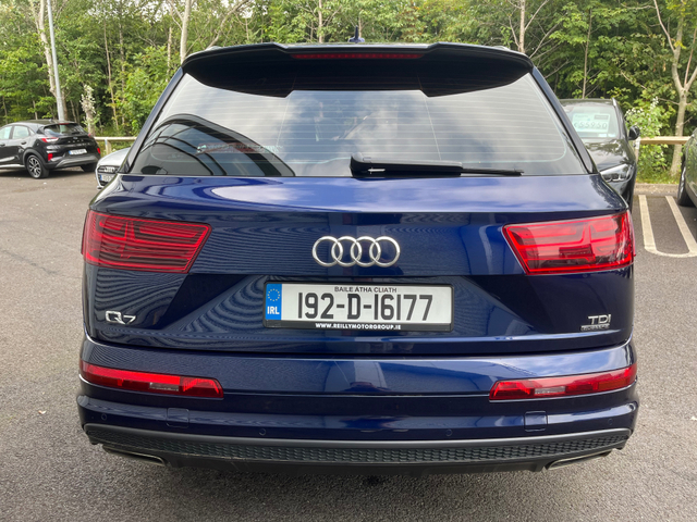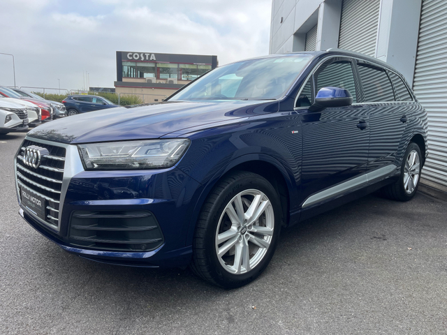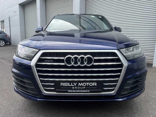 2019 Audi Q7 3.0 Diesel S-Line Auto 7 Seater Finished in a metallic blue Spec list on this car includes Full S-Line Leather Interior Electric & Heated Front Seats Electric Rear Seats Electric Tailgate Front & Rear Sensors Dual Air con Folding Wingmirrors Touchscreen Media Display Bluetooth Media display Cruise Control Apple Car Play & Android Auto Finance can be approved with 1 hour All trade ins accepted 12 Months Warranty Cash price €46,495 Call us on 041 215 1234 for more info Central Locking, Electric Windows, Airbag, Rear Spoiler, Centre Armrest, Multi-function steering wheel, Roof Rails, Satellite Navigation, Traction Control, Metallic Paint, Anti-Theft System, Parking Sensors, Bluetooth, EBD, Isofix, Active Safety Braking / City Brake / Collision Alert, Stop/Start Button, Touch Screen Media Control, External Devices Connectivity, Cup holders, Remote boot/hatch/rear door release, Stability control