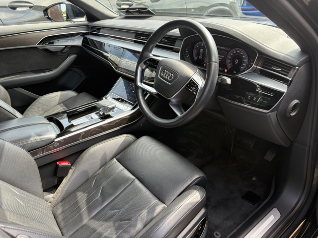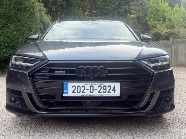 Presented in stunning Daytona Grey Metallic with full Black Napa Leather interior, the superb Luxury specification on our AA Approved, full service history A8 3.0 Tdi 50 286bhp Quattro Black Edition includes Extended Tilt and Slide Sunroof, Bang and Olufsen Sound Upgrade, 20 inch Alloy Wheel Upgrade, Head-up Display, Heated and Cooled Electric Memory Seats, Cruise Control with Collision Alerts and Audi Pre-sense, Wireless Phone Charging, Electric Tailgate, Lane Assist, Reversing Camera, Apple Car Play/Android Auto, LED Headlight Technology, Sat Nav, Bluetooth Media and Phone Integration, Digital Climate Control, Ambient Lighting, Traffic Sign Recognition, Parking Sensors Front and Rear and more. Annual road tax only 600 euro. AA Approved and AA Roadside Assistance provided. 12 Month Unlimited Mileage Warranty. Trade-in welcome. Finance arranged at the most competitive rates available.