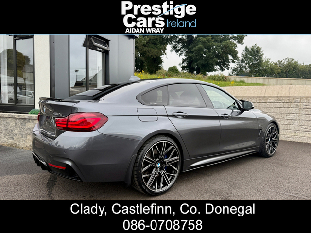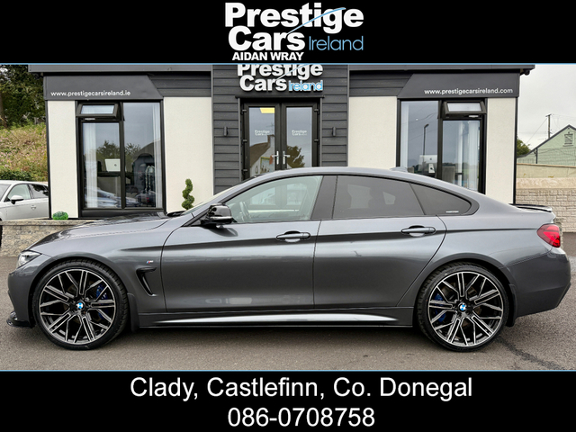 **EURO PRICE €30,650 ON IRISH REGISTRATION, REGISTERED TO YOUR COUNTY WITH NEW NCT** -IRISH ROAD TAX €400 EURO -PRICE FOR NI CUSTOMER ON NI REG 19,650 STG www.prestigecarsireland.ie (FREE DELIVERY ANYWHERE IN IRELAND) *TOP RATE ON EURO GIVEN* **M-PERFORMANCE BODY KIT/20"ALLOYS/MINERAL GREY/VIRTUAL COCKPIT/HEAD UP DISPLAY/TECH PACK/UP GRADED BRAKES/HEATED STEERING WHEEL/PARK SENSORS/XENONS** 2020 (201) BMW 420D M SPORT AUTO GRAN COUPE 5DR 190 BHP, 102,000 MOTORWAY MILES WITH A FULL BMW MAIN DEALER SERVICE HISTORY, ONE OWNER FROM NEW, **VIRTUAL COCKPIT**, GLOSS BLACK M-PERFORMANCE BODY KIT, GLOSS BLACK KIDNEY GRILLS, M4 STYLE MIRROR CAPS, FULL BLACK LEATHER INTERIOR WITH WHITE STITCHING, M STYLE SEAT BELTS, **HEAD UP DISPLAY**, HEATED SEATS, HEATED STEERING WHEEL, HARMON KARDON SURROUND SOUND SYSTEM, DAB RADIO, AMBIENT LIGHTING PACK, CONNECTED PACK PROFESSIONAL, EXTENDED LIGHTING PACKAGE, M AERODYNAMICS PACK, BIG TOUCH SCREEN COLOUR DISPLAY SAT-NAV, APPLE CAR PLAY, ON-BOARD COMPUTER, MULTI FUNCTIONAL WHEEL, IPOD/USB CONNECTION, BLUETOOTH, BMW CONNECT DRIVE, **FACTORY UP GRADED BRAKES**, ELECTRIC FOLDING DOOR MIRRORS, HEATED WINDSCREEN WASHER JETS, BRAND NEW 20" ALLOY WHEELS,OPTIONAL EXTRA @ 900 STG, XENON/LED FRONT AND REAR LIGHTS, AUTOMATIC HEADLIGHTS, LED FRONT FOG LIGHTS, FACTORY REAR PRIVACY GLASS, FRONT AND REAR PARK SENSORS WITH PDC, ELECTRIC BOOT LID, FINISHED IN STUNNING MINERAL GREY, AUTOMATIC GEARBOX WITH F1 PADDLES, 2 KEYS AVAILABLE AND ALL PAPERWORK PRESENT, MINT CONDITION INSIDE AND OUT. ANY INSPECTION WELCOME. EXCELLENT VALUE *(CAR IS FITTED WITH A BRAND NEW 20" ALLOY WHEEL PACKAGE,OPTIONAL EXTRA 900 STG)* **ROI/NI/UK TRADE IN'S ACCEPTED @ TRADE PRICES** -CALL AIDAN ON 00447856438001 OR 0860708758 ***EXCELLENT FINANCE PACKAGES AVAILABLE TO NI/UK/ROI CUSTOMERS*** CREDIT & DEBIT CARDS ACCEPTED PRICE INCLUDES 3 MONTHS WARRANTY FULLY VALETED/DETAILED *ALL OUR STOCK IS PUT OUT TO A VERY HIGH STANDARD* ALL CARS COME FULLY SERVICED WITH NEW TIMING BELT & WATER PUMP KIT FITTED INCLUDING FULL CHECKOVER HPI PRINT OUT VIEWING AVAILABLE 7 DAYS A WEEK, OPEN LATE EVERY NIGHT PRESTIGE CARS IRELAND VIEW OUR FACEBOOK PAGE "PRESTIGE CARS IRELAND" 3 Month Warranty, Central Locking, Electric Windows, Airbag, Fog Lamps, Centre Armrest, Multi-function steering wheel, Satellite Navigation, Traction Control, Anti-Theft System, Parking Sensors, Bluetooth, EBD, Isofix, Keyless Entry, Active Safety Braking / City Brake / Collision Alert, Stop/Start Button, Touch Screen Media Control, 2 Keys, External Devices Connectivity, Cup holders, Remote boot/hatch/rear door release, Stability control