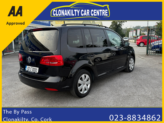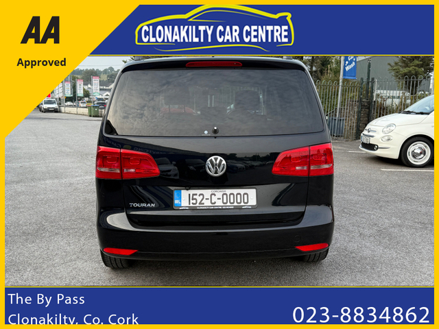 Vw Touran 7 Seater. 1.4 Tsi Petrol. Automatic. Rear camera. Apple carplay android auto head unit. Vrt and fresh nct included. Delivery available, (Call for details) Cash,Card Payment or Bank Transfer Finance Available, (Fill in online form on website) Trade ins Welcome, Warranty, Full service, Air con service (when air con fitted) Full valet, Sanity system clean. Enquiries 0238834862 Press 1 for Sales 2 for Serviced 3 for Valeting 4 for Accounts Stephen 0877401942 (Call or text, if unavailable text and I will return call ASAP) Snap chat Stevecloncarcentre Website www.clonakiltycarcentre.com Address Showroom and workshop. Clonakilty car centre, The Bypass, Clonakilty, Co,Cork. P85 ET99. Ford Toyota Honda Nissan Audi Volkswagen Seat Fiat Bmw Mercedes Peugeot Citroen Fiesta focus Yaris Corolla micra up Perfect working order, 3 Month Warranty, Trade in accepted, Air Conditioning, Central Locking, Immaculate condition, Electric Windows, Airbag, Alarm, Alloy Wheels, Electric Mirrors, Immobiliser, Privacy Glass, Centre Armrest, Climate Control, Traction Control, Multiple Air Bags, Anti-Theft System, Bluetooth, Brand New Tyres, Remote Central Locking, Isofix, History Checked, Finance Checked, Apple Car Play, Android Auto, Wireless Smartphone Control, Touch Screen Media Control, Cup holders