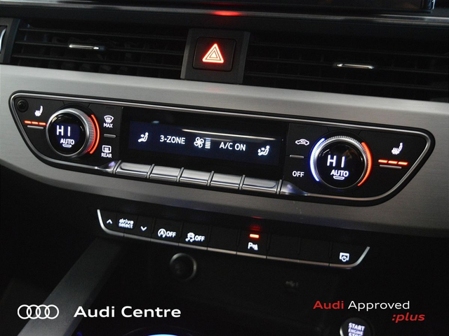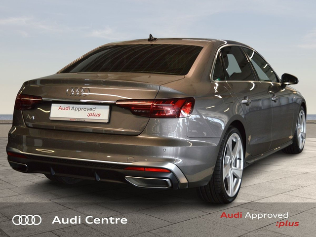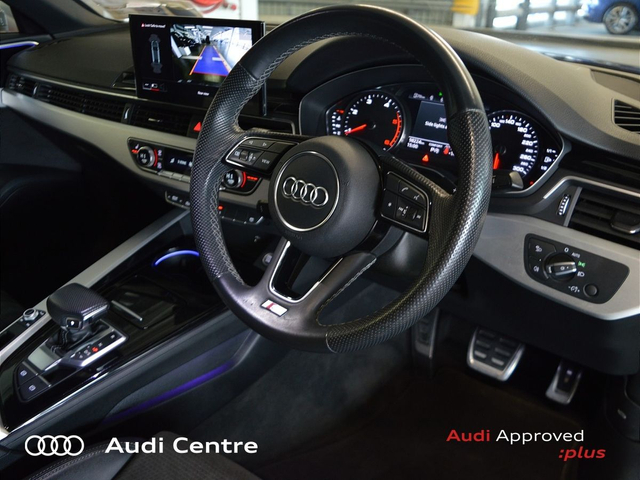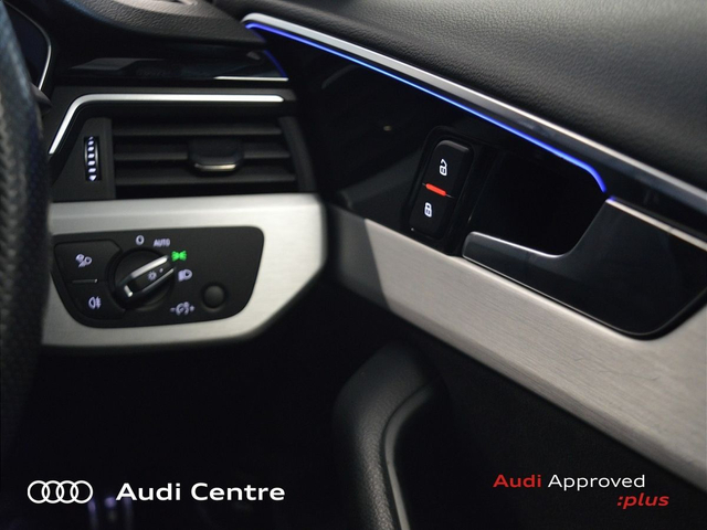 Audi A4 30 TDI S-line 136HP S-Tronic • Audi Sound System • Bluetooth Interface • Audi Drive Select • Audi Stop/Start • Auto Handbrake • Cruise Control • High Gloss Black Grille • Metallic Paint • S-Line Body Styling • Button Start-Stop • Door Sills with Aluminium Inlays • Electric Mirrors Heated Memory • Electric Windows • Front/Rear Floor Mats • Interior Lighting Pack • Rake/Reach Adjustable Steering Column • 3 Spoke Leather Multifunction S-Line Steering Wheel • Heated Seats • Lumbar Support • ABS • Alarm • Daytime Running Lights • High Beam Assist • Hill Hold Assist • Immobilizer • ISO Fix Front Passenger and Rear Seat Preparation • LED Headlights • Light and Rain Sensor • Multiple Airbags • Reverse Camera • Voice control • Speed Limiter • Sport Suspension • 3 climatic zones • Front Sports Seats • Parking system plus • 19"Audi Sport Alloys • LED rear lights with dynamic turn signal • Audi Connect • Audi Smartphone Interface • Pre sense city