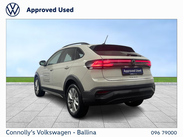 DESCRIPTION: Now available at Connolly’s VW Ballina: A stylish and modern compact SUV that blends practicality with a sleek, coupe-inspired design. Offering a comfortable ride, efficient performance, and a raised driving position, the Taigo is ideal for both urban driving and longer journeys. With its smart interior, advanced technology, and strong build quality, it provides a confident and enjoyable driving experience, making it a great choice for those seeking a versatile and eye-catching vehicle. KEY FEATURES • Digital cockpit display, putting navigation and driving info directly in your line of sight • Apple CarPlay & Android Auto • Reverse parking sensors, Making Parking Effortless • Alloy wheels • Cruise control, giving comfortable motorway driving • Climate Control DEALERSHIP BENEFITS Buying from Connolly’s Volkswagen Ballina gives you peace of mind with: Fully inspected vehicles Minimum 12-month warranty Flexible finance packages available Trade ins welcome Nationwide Delivery Available Call our sales team to arrange a test drive or a personalised walkaround video.