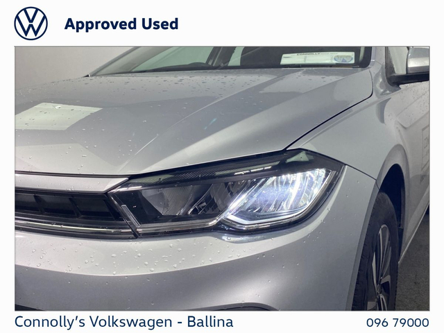 DESCRIPTION: Now available at Connolly’s VW Ballina: The Volkswagen Polo is a well-rounded, reliable hatchback that offers a perfect balance of comfort, efficiency, and everyday practicality. Known for its solid build quality and refined driving experience, the Polo delivers smooth handling and impressive fuel economy, making it ideal for both city driving and longer journeys. With a smart, timeless design and a reputation for dependability, it remains a popular choice for drivers seeking a compact car that doesn’t compromise on performance or style. KEY FEATURES • Digital cockpit display, putting navigation and driving info directly in your line of sight • Apple CarPlay & Android Auto • Reverse parking sensors, Making Parking Effortless • Alloy wheels • Cruise control, giving comfortable motorway driving • Climate Control DEALERSHIP BENEFITS Buying from Connolly’s Volkswagen Ballina gives you peace of mind with: Fully inspected vehicles Minimum 12-month warranty Flexible finance packages available Trade ins welcome Nationwide Delivery Available Call our sales team to arrange a test drive or a personalised walkaround video.