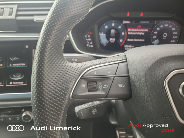 Audi Q3 35TDI 150HP S Line S-T + Black Styling • Bluetooth Interface • Touchscreen Stereo • Cruise Control • Black Styling Pack • Dual Climate control • Multi-Function Steering Wheel • Tinted Privacy Glass to Rear of B-Post • Headlining in Black Cloth • Leather Interior • Leather Steering Wheel • Reversing Sensors • USB charging ports