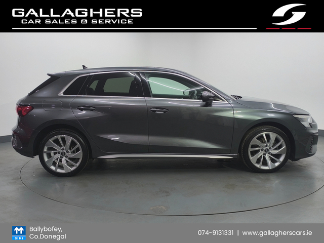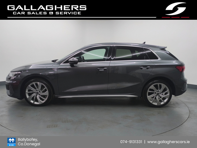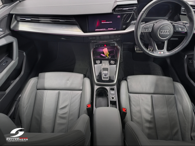 211 AUDIA3 1.4 TFSI E AUTO S-LINE -LED LIGHTING - HEATED LEATHER SEATS - ALLOY WHEELS - PRIVACY GLASS - REAR VIEW CAMERA - APPLE CAR PLAY - ANDROID AUTO - SAT NAV - BLUETOOTH - AIR CONDITIONING - INTERIOR AMBIENT LIGHTING - AUTO LIGHTS - AUTO WIPERS - 2 KEYS - SERVICE HISTORY - PRICE INCLUDES VRT PAID & PLATES FITTED - NEW NCT - NATIONWIDE DELIVERY CAN BE ARRANGED - NATIONWIDE WARRANTY - FINANCE ARRANGED VIA OUR WEBSITE PAUL 087 3009930 CATHAL 087 4440077 OFFICE 074 9131331 GALLAGHERS CARS DONEGAL ROAD BALLYBOFEY DONEGAL F93A6C1 Central Locking, Electric Windows, Airbag, Alarm, Cruise Control, Electric Mirrors, Immobiliser, Rear Spoiler, Privacy Glass, Automatic Wipers, Automatic Lights, Centre Armrest, Multi-function steering wheel, Climate Control, Satellite Navigation, Traction Control, Metallic Paint, Multiple Air Bags, Xenon Lights, Anti-Theft System, Parking Sensors, Bluetooth, Remote Central Locking, EBD, Electronic handbrake, Folding rear seats, Isofix, History Checked, Finance Checked, Apple Car Play, Android Auto, Reversing Camera, Front Parking Sensors, Lane Departure Warning, Wireless Smartphone Control, Active Safety Braking / City Brake / Collision Alert, Heated Steering Wheel, Stop/Start Button, Drive Mode Selector, Dual Zone Climate Control, Daytime Running Lights, External Devices Connectivity, Cup holders, Remote boot/hatch/rear door release, Stability control
