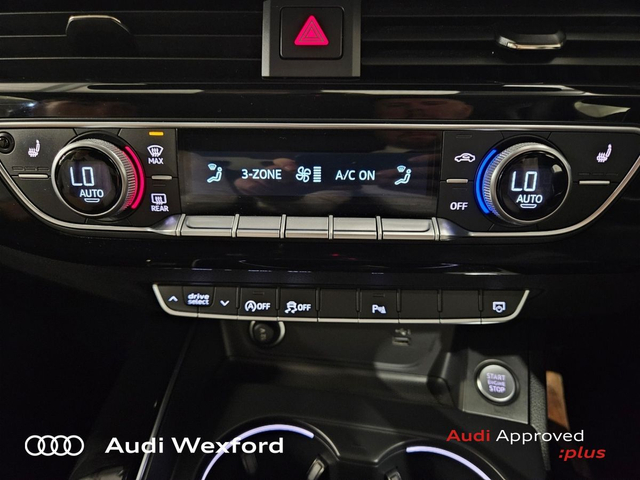 Audi A4 35 TDI 163HP S Tronic SE €451p/m • Audi Sound System • Bluetooth Interface • Mobile Phone Preparation-Bluetooth • Audi Drive Select • Audi Stop/Start • Auto Handbrake • Cruise Control • Alloy Wheels • Space Saver Spare Wheel • Air Conditioning • Armrest • Button Start-Stop • Climate Control • Electric Mirrors • Electric Windows • Multi-Function Steering Wheel • Lumbar Support • ABS • Alarm • Child Locks • Immobilizer • ISO Fix • Reverse Camera • Reversing Sensors • Remote Central Locking • USB • Audi Connect • Keyless Go • Reverse Camera • USB charging ports