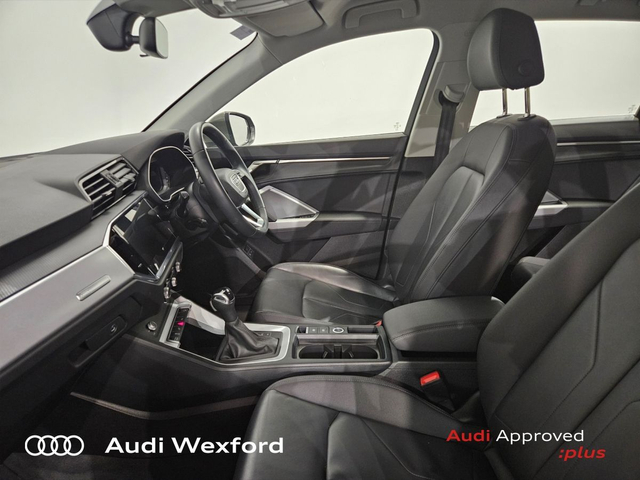 Audi Q3 45 TFSIe 245 SE ST €466pm • Audi Sound System • Bluetooth Interface • Mobile Phone Preparation-Bluetooth • Audi Drive Select • Audi Stop/Start • Auto Handbrake • Cruise Control • Alloy Wheels • Air Conditioning • Armrest • Button Start-Stop • Electric Mirrors • Electric Windows • Multi-Function Steering Wheel • Onboard Computer • Rake/Reach Adjustable Steering Column • Lumbar Support • ABS • Active Lane Assist • Alarm • Immobilizer • Reverse Camera • Reversing Sensors • USB • Reverse Camera • USB charging ports