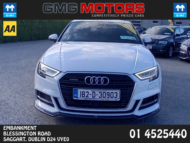 Welcome to GMG motors established since 2016 and a proud member of SIMI and AA approved. This stunning Audi comes with 12 month warranty 12 month AA membership New NCT Fully serviced Fully valeted Finance available AA approved vehicle Trade in welcome Contact sales on 014525440 to arrange a viewing and test drive. Opening hours Monday-Friday 9.00-6.00 Saturday 10.00-1.00 12 Month Warranty, Air Conditioning, Immaculate condition, Electric Windows, Airbag, Alloy Wheels, Cruise Control, Electric Mirrors, Electric Seats, Immobiliser, Rear Spoiler, Sports Seats, Centre Armrest, Multi-function steering wheel, Climate Control, Satellite Navigation, Metallic Paint, Multiple Air Bags, Anti-Theft System, Bluetooth, Remote Central Locking, EBD, Electronic handbrake, Isofix, History Checked, Finance Checked, Mirror Link, Heated Rear Seats, Reversing Camera, Active Safety Braking / City Brake / Collision Alert, Adaptive Cruise Control, Gesture Control, Dual Zone Climate Control, 2 Keys, Stability control
