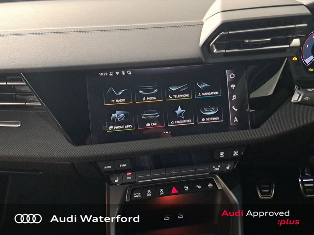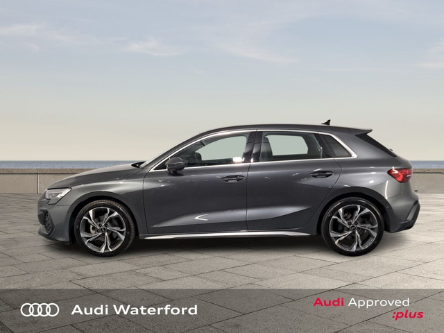 Audi A3 S-Line Sportback 30Tdi from €454 per month • Auto Lights and Wipers • Keyless Go • Audi Virtual Cockpit • Audi Smartphone Interface • Audi Lane Assist • Audi Connect • 3 Zone Climate Control • USB • Reverse Camera • Multiple Airbags • LED Headlights • ISO Fix Front Passenger and Rear Seat Preparation • ISO Fix • Immobilizer • Front and Rear Park Assist • Bluetooth Interface • Leather Interior • Heated Seats • Front Sports Seats including Electric Lumbar Support • Split Fold Rear Seats • Multi-Function Steering Wheel • Electric Windows • Dual Climate control • Climate Control • Metallic Paint • Chrome Exterior Package • 18"Alloys • Auto Handbrake • Adaptive Cruise Control • Audi Stop/Start • MMI Radio Plus