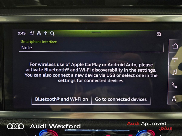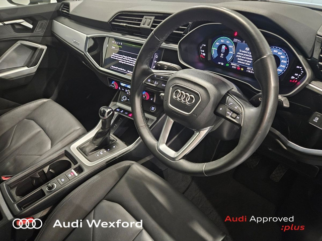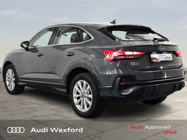 Audi Q3 Sportback 45 TFSIe 245bhp SE S-T €418pm • Audi Sound System • Bluetooth Interface • Mobile Phone Preparation-Bluetooth • Audi Drive Select • Audi Stop/Start • Auto Handbrake • Cruise Control • Alloy Wheels • Air Conditioning • Armrest • Button Start-Stop • Electric Mirrors • Electric Windows • Multi-Function Steering Wheel • Rake/Reach Adjustable Steering Column • Lumbar Support • ABS • Alarm • Anti-Lock Brake System • Child Locks • ISO Fix • Reverse Camera • Reversing Sensors • USB • Keyless Go • Reverse Camera • USB charging ports