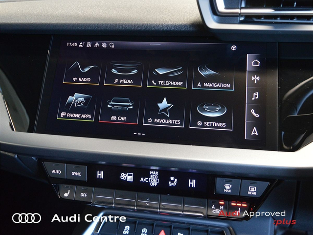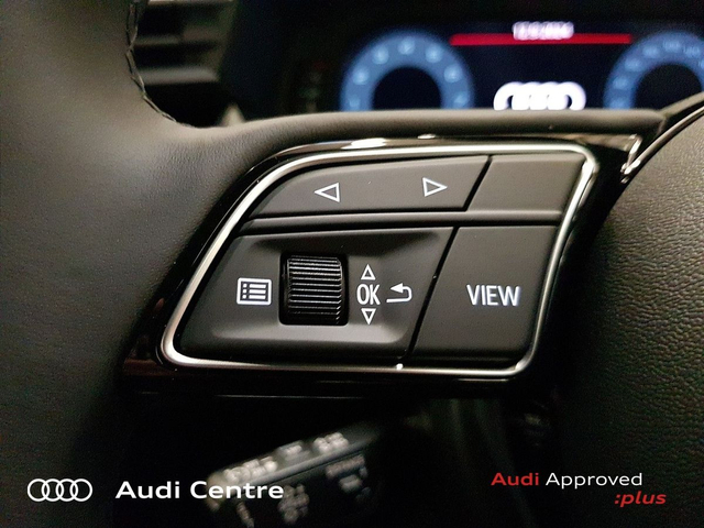 Audi A3 SAL 30 TDI 115HP SE • MMI Radio Plus • Audi Stop/Start • Adaptive Cruise Control • Auto Handbrake • High Gloss Pack • Armrest • Button Start-Stop • Climate Control • Door Sills with Aluminium Inlays • Electric Mirrors Heated Memory • Electric Windows • Front/Rear Floor Mats • Interior Lighting Pack • Rake/Reach Adjustable Steering Column • Heated Seats • Leather Steering Wheel • ABS • Child Locks • Daytime Running Lights • Hill Hold Assist • Immobilizer • ISO Fix Front Passenger and Rear Seat Preparation • LED Headlights • Light and Rain Sensor • Multiple Airbags • Reverse Camera • Speed Limiter • 3 climatic zones • Dashcam • Assist package Drive and Park plus • Front emergency brake assist • Lane departure warning • Park assist with parking system plus • Swerve assist and turn assist • Audi Connect • Audi Phone Box with wireless charging • Audi Smartphone Interface • Audi Virtual Cockpit • Keyless Go