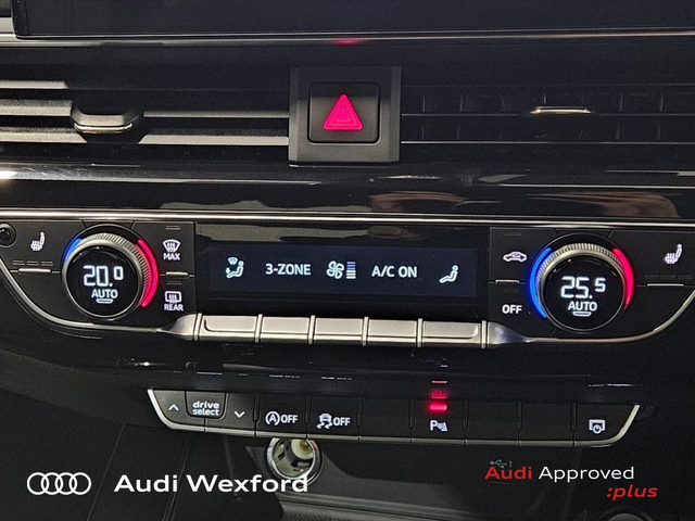 Audi A4 35 TDI 163HP S Tronic SE €453p/m • Audi Music Interface • Audi Sound System • Bluetooth Interface • Mobile Phone Preparation-Bluetooth • Touchscreen Stereo • Audi Drive Select • Audi Stop/Start • Auto Handbrake • Cruise Control • Alloy Wheels • Space Saver Spare Wheel • Air Conditioning • Armrest • Button Start-Stop • Climate Control • Electric Mirrors • Electric Windows • Multi-Function Steering Wheel • Onboard Computer • Rake/Reach Adjustable Steering Column • Lumbar Support • ABS • Alarm • Anti-Lock Brake System • Child Locks • Immobilizer • ISO Fix • Reverse Camera • Reversing Sensors • Remote Central Locking • USB • Front and Rear Park Sensors • Voice control • Audi Connect • Audi Smartphone Interface • Keyless Go • Reverse Camera • USB charging ports