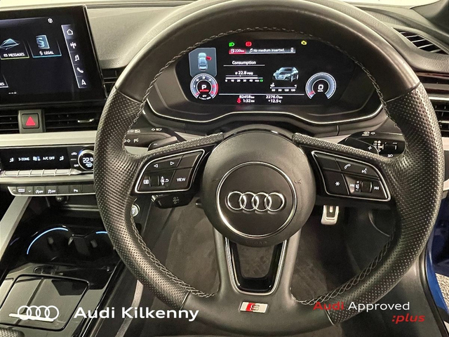 Audi A4 35 TDI 163HP S Tronic S line Competition with Virtual Cockpit "Price Includes €2,000 Scrappage" • Audi Music Interface • Audi Sound System • Touchscreen Stereo • Audi Drive Select • Audi Stop/Start • Auto Handbrake • Cruise Control • 19"Alloys • Black Styling Pack • High Gloss Black Grille • Metallic Paint • Spoiler • Air Conditioning • Ambient Lighting • Armrest • Multi-Function Steering Wheel • Privacy Glass • Split Fold Rear Seats • Heated Seats • Leather Steering Wheel • ABS • Active Lane Assist • Alarm • Auto Lights and Wipers • Child Locks • Daytime Running Lights • High Beam Assist • Immobilizer • ISO Fix • LED Headlights • Multiple Airbags • Reverse Camera • Remote Central Locking • Full Service History • Front and Rear Park Sensors • Folding Mirrors • Audi Virtual Cockpit • Keyless Go