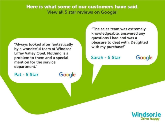 | Contact info: | Windsor Opel Exit 7 M50 Liffey Valley Motor Mall Clondalkin County Dublin Ph: 01-4632611 |