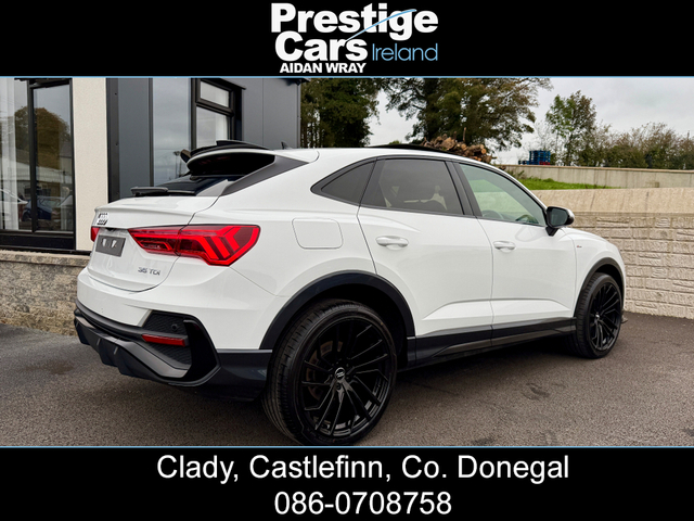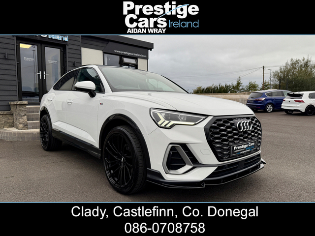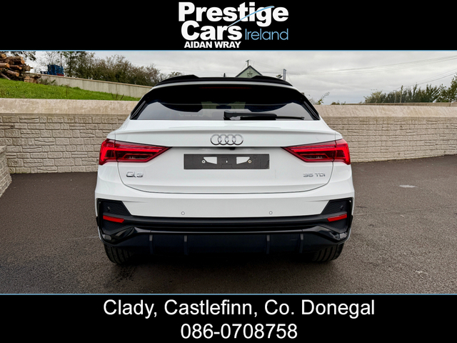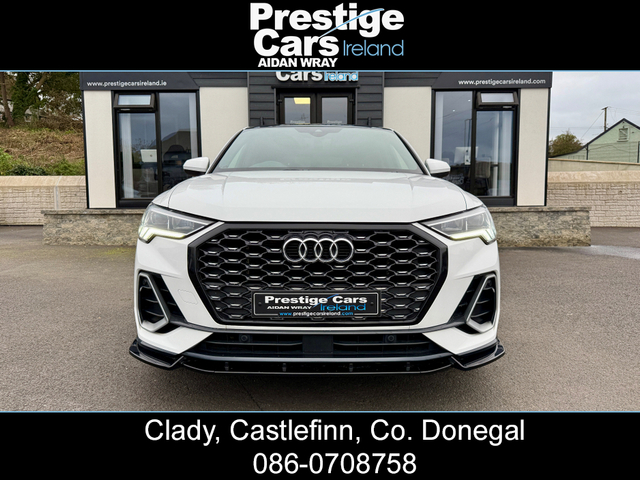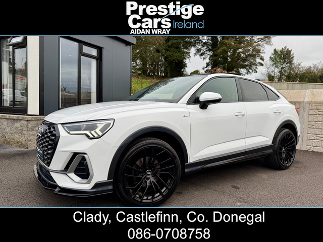 **EURO PRICE €35,850 ON IRISH REGISTRATION, REGISTERED TO YOUR COUNTY WITH NEW NCT** -IRISH ROAD TAX €270 EURO -PRICE FOR NI CUSTOMER ON NI REG 24,250 STG www.prestigecarsireland.ie (FREE DELIVERY ANYWHERE IN IRELAND) *TOP RATE ON EURO GIVEN* 2019 (192) AUDI Q3 SPORTBACK 2.0 35 TDI S LINE 5DR, AUTOMATIC 150 BHP, **BLACK EDITION STYLING**, ONLY 88,000 MOTORWAY MILES WITH A FULL AUDI MAIN DEALER SERVICE HISTORY, (WARRANTED MILES), 1 COMPANY OWNER FROM NEW, **VIRTUAL COCKPIT**, COMFORT AND SOUND PACKAGE, **HEAD UP DISPLAY**, HALF LEATHER/SUEDE INTERIOR WITH S-LINE LOGO, HEATED SEATS, BIG TOUCH SCREEN COLOUR DISPLAY SAT-NAV, MULTI FUNCTIONAL WHEEL, ARM RESTS, IPOD/USB CONNECTION, 2 USB CHARGING PORTS, BLUETOOTH,**AMBIENT LIGHTING PACK**, HIGH GLOSS PACKAGE, LED INTERIOR LIGHT PACK, AUDI CONNECT WITH AMAZON ALEXA INTEGRATION, VOICE CONTROL SYSTEM, ELECTRIC OPERATED TAILGATE, APPLE CAR PLAY, AUDI DRIVE SELECT OPTIONS, AUDI PRE SENSE, AUTO HOLD, COMFORT DYNAMIC SUSPENSION, BANG AND OLUFSEN SOUND SYSTEM, DAB DIGITAL RADIO, FINISHED IN STUNNING IBIS WHITE, GLOSS BLACK FRONT SPLITTER & LIP SPOILER, AUDI PARKING SYSTEM PLUS WITH FRONT AND REAR PARK SENSORS, REVERSE CAMERA, XENON/LED FRONT AND REAR LIGHTS, DYNAMIC REAR INDICATORS, TURNING LIGHTS, FACTORY REAR PRIVACY GLASS, ELECTRIC FOLDING AUTO DIMMING/ADJUSTABLE/HEATED DOOR MIRRORS WITH KERB VIEW FUNCTION FOR PASSENGER SIDE, DAYTIME LED RUNNING LIGHTS, BRAND NEW 20" ALLOY WHEEL PACKAGE,OPTIONAL EXTRA 900 STG, AUTOMATIC GEARBOX WITH F1 PADDLES, 2 KEYS AVAILABLE AND ALL PAPERWORK PRESENT, MINT CONDITION INSIDE AND OUT, ANY INSPECTION WELCOME. EXCELLENT VALUE WITH HIGH SPEC. STUNNING EXAMPLE *(CAR IS FITTED WITH A BRAND NEW 20" ALLOY WHEEL PACKAGE,OPTIONAL EXTRA 900 STG)* **ROI/NI/UK TRADE IN'S ACCEPTED @ TRADE PRICES** -CALL AIDAN ON 00447856438001 OR 0860708758 ***EXCELLENT FINANCE PACKAGES AVAILABLE TO NI/UK/ROI CUSTOMERS*** CREDIT & DEBIT CARDS ACCEPTED PRICE INCLUDES 3 MONTHS WARRANTY FULLY VALETED/DETAILED *ALL OUR STOCK IS PUT OUT TO A VERY HIGH STANDARD* ALL CARS COME FULLY SERVICED WITH NEW TIMING BELT & WATER PUMP KIT FITTED INCLUDING FULL CHECKOVER HPI PRINT OUT VIEWING AVAILABLE 7 DAYS A WEEK, OPEN LATE EVERY NIGHT PRESTIGE CARS IRELAND VIEW OUR FACEBOOK PAGE "PRESTIGE CARS IRELAND" 3 Month Warranty, Central Locking, Electric Windows, Airbag, Cruise Control, Rear Spoiler, Privacy Glass, Centre Armrest, Multi-function steering wheel, Satellite Navigation, Traction Control, Metallic Paint, Anti-Theft System, Parking Sensors, Bluetooth, EBD, Isofix, Apple Car Play, Android Auto, Active Safety Braking / City Brake / Collision Alert, Stop/Start Button, 2 Keys, External Devices Connectivity, Cup holders, Remote boot/hatch/rear door release, Stability control