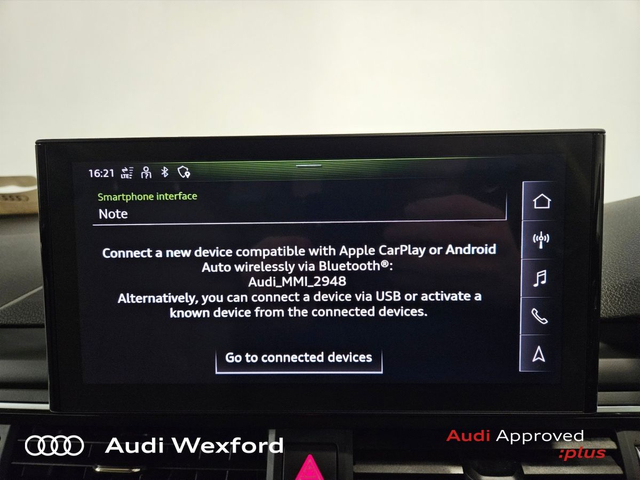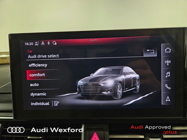 Audi A4 35 TDI 163HP S Tronic SE €451pm • Audi Sound System • Bluetooth Interface • Mobile Phone Preparation-Bluetooth • Touchscreen Stereo • Audi Drive Select • Audi Stop/Start • Auto Handbrake • Cruise Control • Alloy Wheels • Air Conditioning • Armrest • Button Start-Stop • Electric Mirrors • Electric Windows • Multi-Function Steering Wheel • Onboard Computer • Rake/Reach Adjustable Steering Column • Lumbar Support • ABS • Alarm • Anti-Lock Brake System • Child Locks • ISO Fix • Reverse Camera • Reversing Sensors • USB • Keyless Go • Reverse Camera • USB charging ports