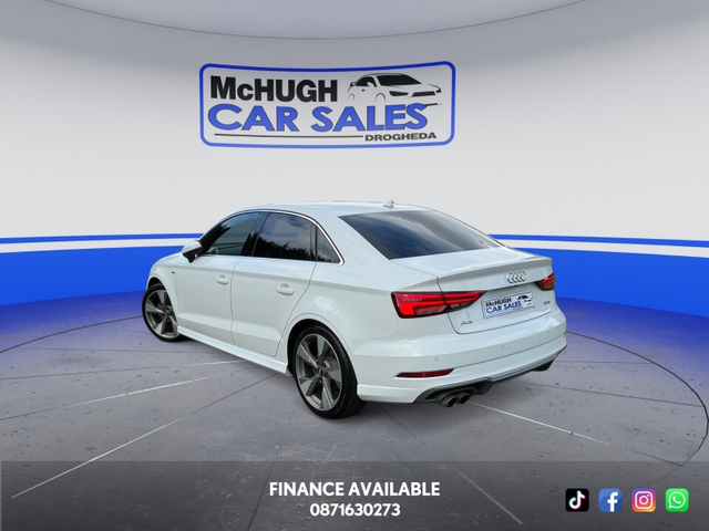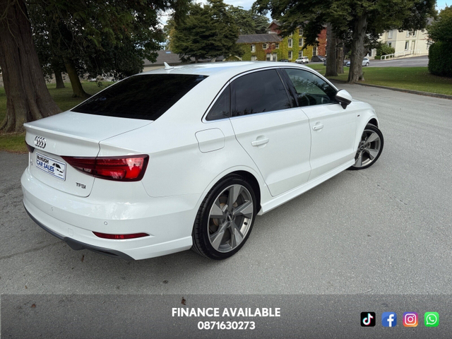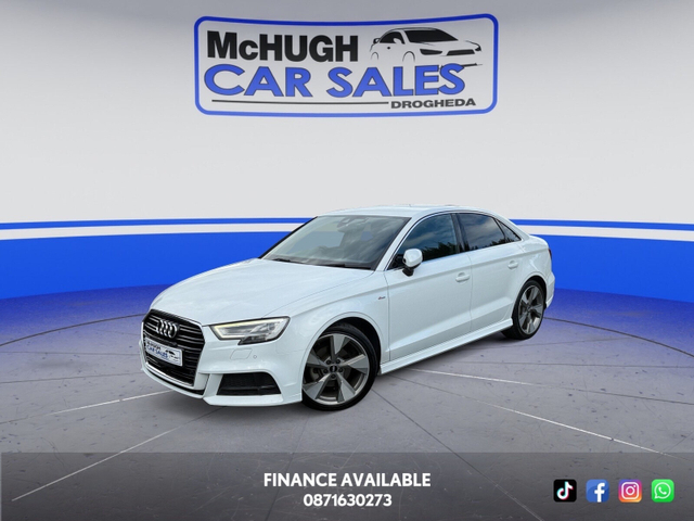 * Finance Available * * 2018 S-line A3 Saloon Stronic * This Stunning 2018 Audi A3 Saloon S-line 1.5 Petrol Stronic Automatic comes loaded with Spec and Looks Particularly Striking with Its S-line Interior and Exterior. Full Leather and Winter Pack. Window Price is set at € 24,950 as always check out our website for more information www.mchughcarsales.ie or Call or Wattsapp us on 0871630273 Air conditioning, Climate control, Dual zone climate control, Multi zone climate control, Armrest, Electrically adjustable seats, Electric boot, Electric side mirrors, Electric windows, Electric handbrake, Heated seats, Lumbar support, Multi-function steering wheel, Seat ventilation, Split rear seats, Gear shift paddles, Android Auto, Apple CarPlay, Bluetooth, CD, MP3 compatible, 12v power outlet, Radio, Touch screen display, USB connection (front), Adaptive cruise control, Cruise control, Hill hold assist, Navigation system, Parking camera, Remote boot release, Speed limiter, Start-stop system, Voice control, Digital instrument panel, Alloy wheels, Leather interior, Leather steering wheel, Sports seats, Tinted windows, Night vision assist, Adaptive headlights, Ambient lighting, Auto lights (dusk sensor), Bi-xenon headlights, Daytime running lights, Fog lights, High beam assist, LED headlights, Xenon headlights, ABS, Lane change assist, Anti collision system, Alarm system, Blind spot assist, Emergency brake assist, Central locking, Remote central locking, Driver-side airbag, Immobilizer, Isofix, Lane departure warning, Tyre pressure monitor, Passenger-side airbag, Seat belt warning, Side airbag, Stability control, Traction control, Emergency tyre repair kit
