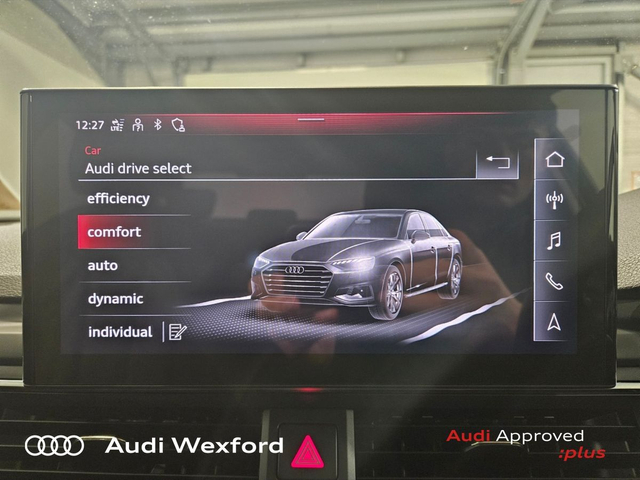 Audi A4 35 TDI 163HP S Tronic SE €442pm • Audi Sound System • Bluetooth Interface • Mobile Phone Preparation-Bluetooth • Touchscreen Stereo • Audi Drive Select • Audi Stop/Start • Auto Handbrake • Cruise Control • Alloy Wheels • Air Conditioning • Armrest • Electric Mirrors • Electric Windows • Multi-Function Steering Wheel • Onboard Computer • Rake/Reach Adjustable Steering Column • Lumbar Support • ABS • Alarm • Anti-Lock Brake System • Child Locks • Immobilizer • ISO Fix • Reverse Camera • Reversing Sensors • USB • Audi Connect • Keyless Go • Reverse Camera • USB charging ports
