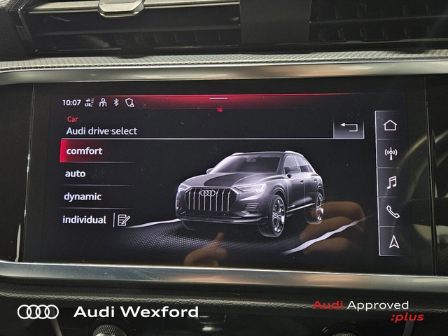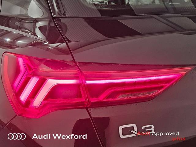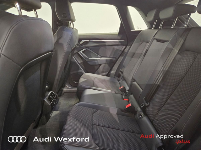 Audi Q3 45 TFSI E S Tronic S line €454pm • Audi Sound System • Bluetooth Interface • Mobile Phone Preparation-Bluetooth • Touchscreen Stereo • Audi Drive Select • Audi Stop/Start • Auto Handbrake • Cruise Control • Alloy Wheels • S-Line Body Styling • S-Line Exterior Pack • Air Conditioning • Armrest • Button Start-Stop • Electric Mirrors • Electric Windows • Multi-Function Steering Wheel • Onboard Computer • Rake/Reach Adjustable Steering Column • Leather Interior • Lumbar Support • ABS • Alarm • Anti-Lock Brake System • Child Locks • Immobilizer • ISO Fix • Reverse Camera • Reversing Sensors • USB • Audi Connect • Audi Smartphone Interface • Keyless Go • Reverse Camera • USB charging ports