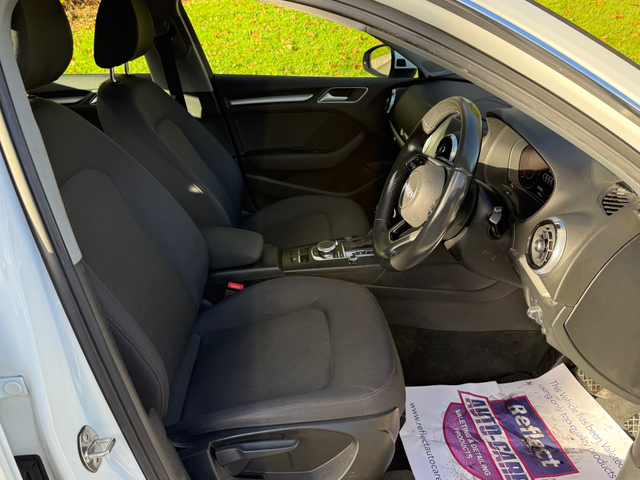 Low mileage Audi A3 in immaculate condition. This car looks and drives like brand new It will come with our full retail package. - AA approved - 101 point inspection - Fully serviced - full valet - NCT - 12 month warranty - free 12 month AA roadside assistance - Finance available 12 Month Warranty, Immaculate condition, Electric Windows, Alloy Wheels, Cruise Control, Electric Mirrors, Immobiliser, Automatic Wipers, Automatic Lights, Centre Armrest, Multi-function steering wheel, Climate Control, Traction Control, Parking Sensors, Bluetooth, Remote Central Locking, Electronic handbrake, Folding rear seats, Isofix, Hill holder, Roadside assistance, History Checked, Keyless Entry, Reversing Camera, Active Safety Braking / City Brake / Collision Alert, Adaptive Cruise Control, Stop/Start Button, Touch Screen Media Control, Dual Zone Climate Control, External Devices Connectivity, Stability control