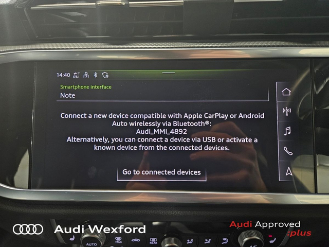 Audi Q3 35 TDI 150HP Sportback S Tronic SE €426 p/m • Audi Sound System • Bluetooth Interface • Mobile Phone Preparation-Bluetooth • Touchscreen Stereo • Audi Stop/Start • Adaptive Cruise Control • Auto Handbrake • Cruise Control • Alloy Wheels • Metallic Paint • Space Saver Spare Wheel • Air Conditioning • Armrest • Button Start-Stop • Electric Mirrors • Electric Windows • Multi-Function Steering Wheel • Onboard Computer • Rake/Reach Adjustable Steering Column • Lumbar Support • ABS • Alarm • Anti-Lock Brake System • Child Locks • High Beam Assist • Immobilizer • ISO Fix • Reverse Camera • Reversing Sensors • Remote Central Locking • USB • Audi Connect • Keyless Go • Reverse Camera • USB charging ports